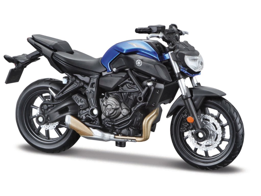 Yamaha MT-07 2018. Kovové modely motocyklů v modelovém měřítku 1:18. Motocykly mají otáčivá řidítka a odpruženou zadní nápravu. Jsou usazeny na černém plastovém podstavci. Rozměry balení: 16x10,5x7cm. Věk: 3+