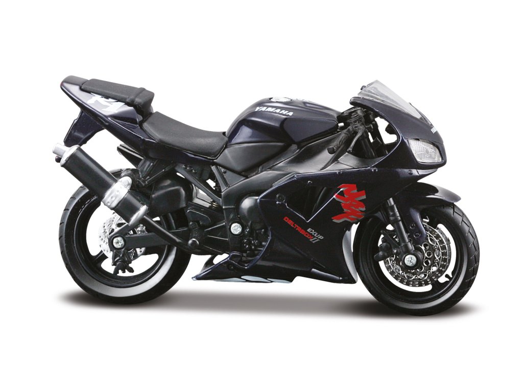 Yamaha YZF-R1. Kovové modely motocyklů v modelovém měřítku 1:18. Motocykly mají otáčivá řidítka a odpruženou zadní nápravu. Jsou usazeny na černém plastovém podstavci. Rozměry balení: 16x10,5x7cm. Věk: 3+