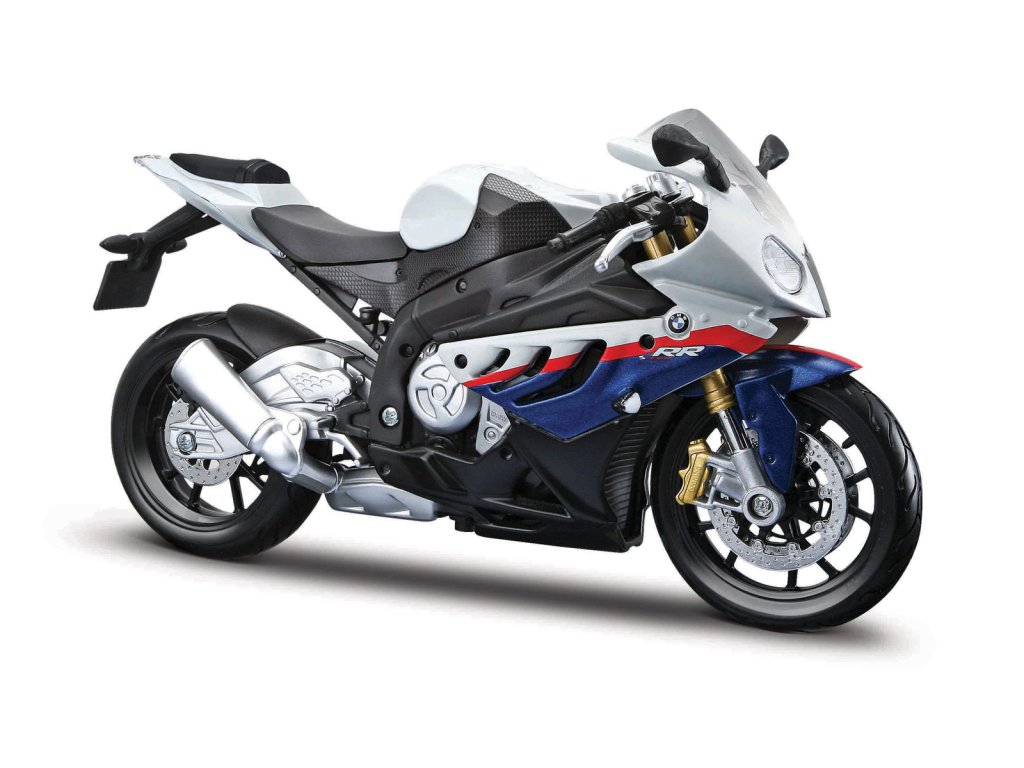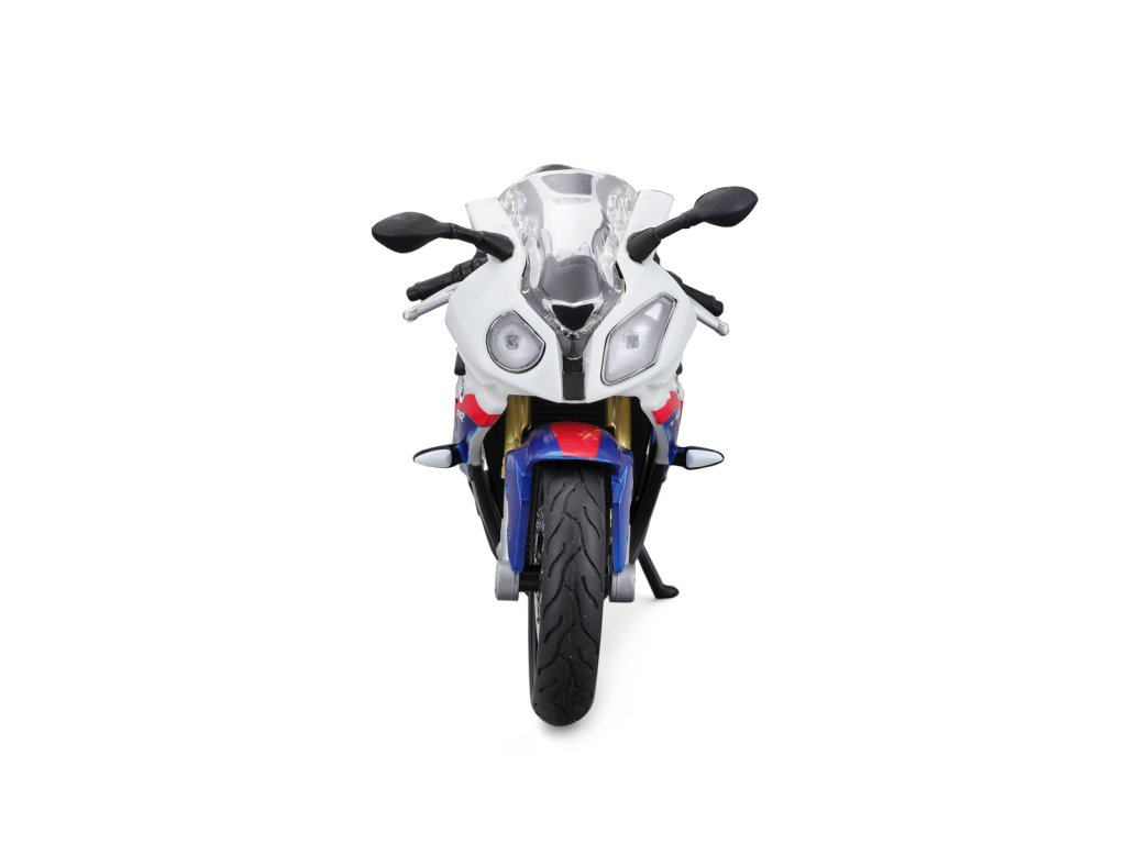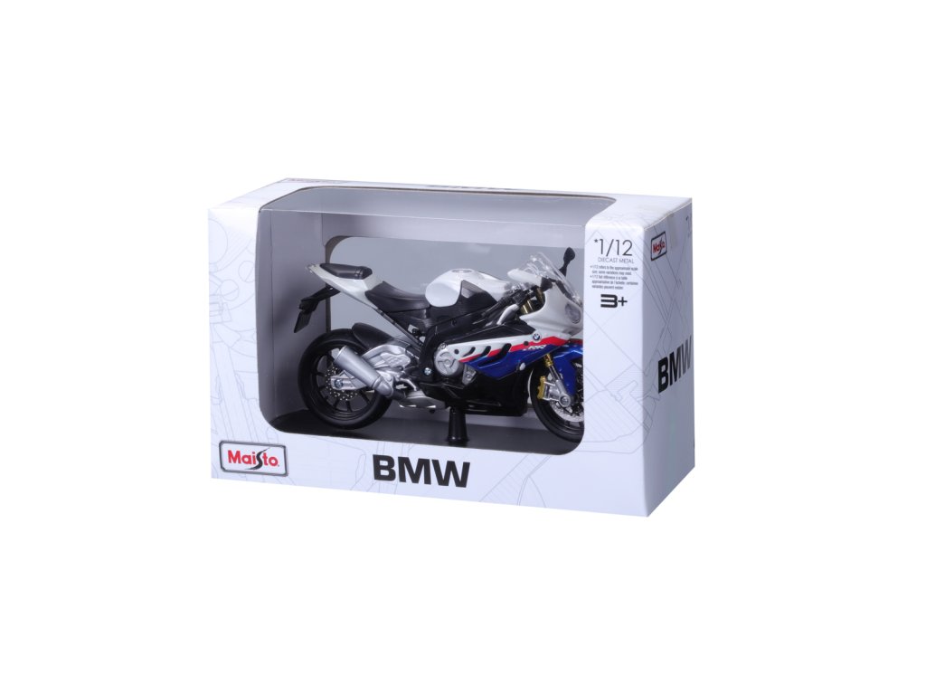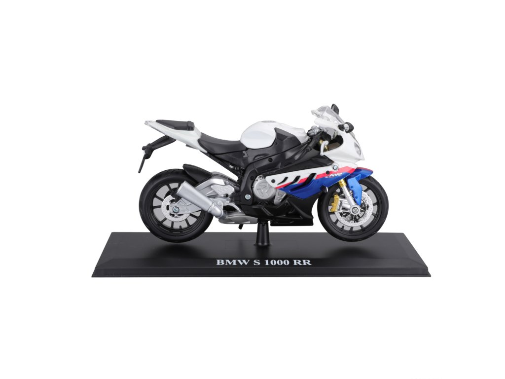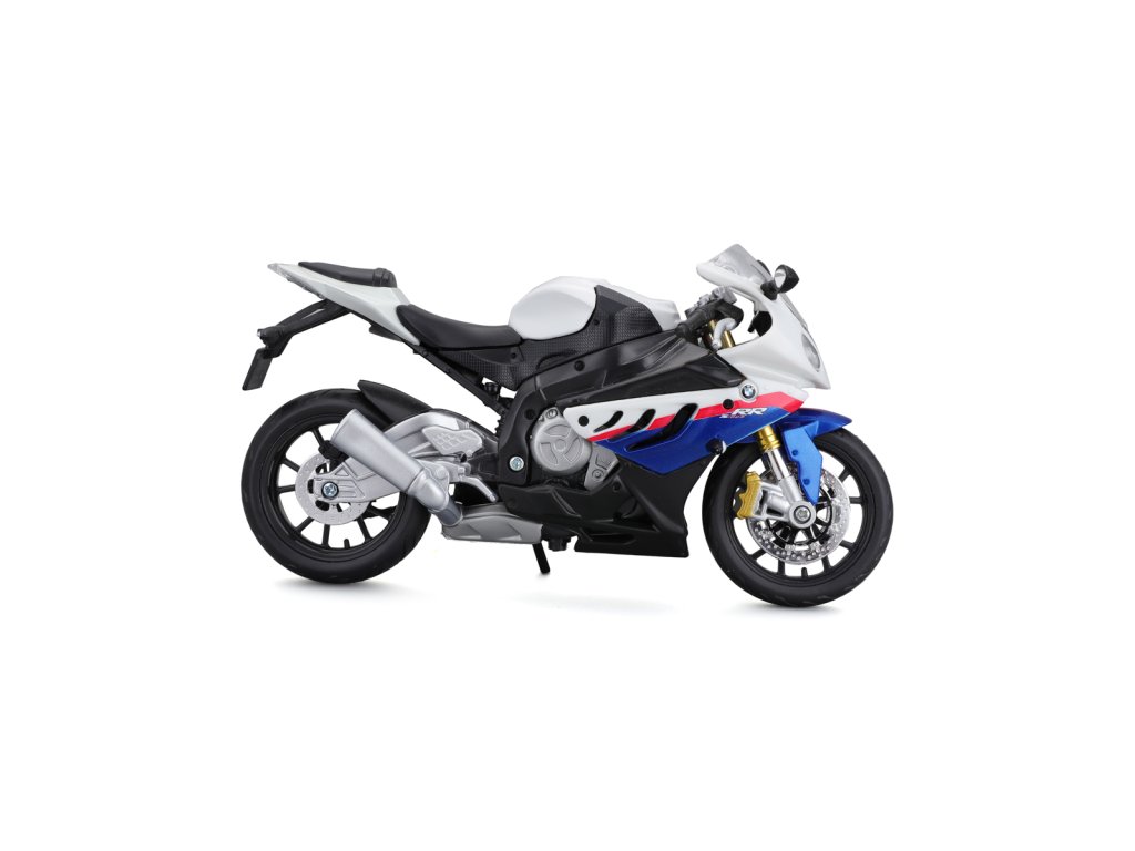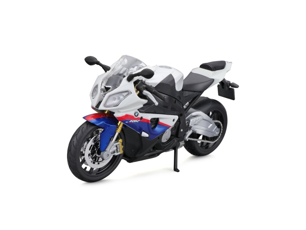 BMW S 1000 RR. Model motocyklu v měřítku 1:12 s autentickými detaily. Zadní odpružení s pružinami. Pohyblivý funkční stojánek. Kola, která se volně otáčejí. Balení: 22,3x13,97x8,89cm. Věk: 3+