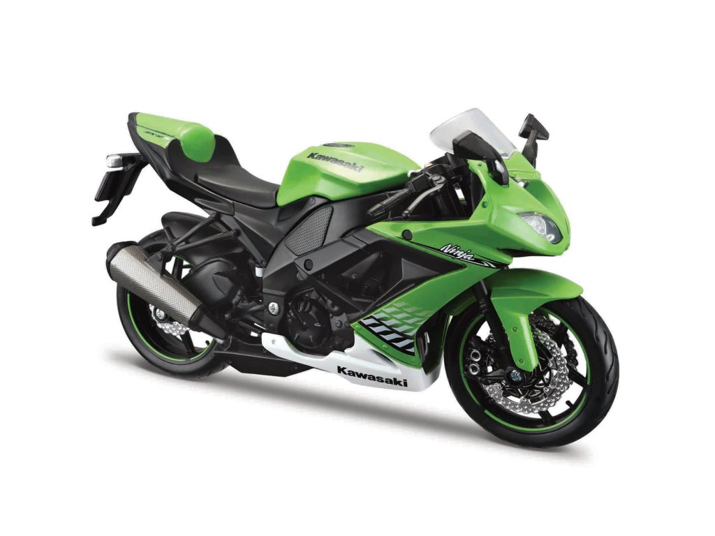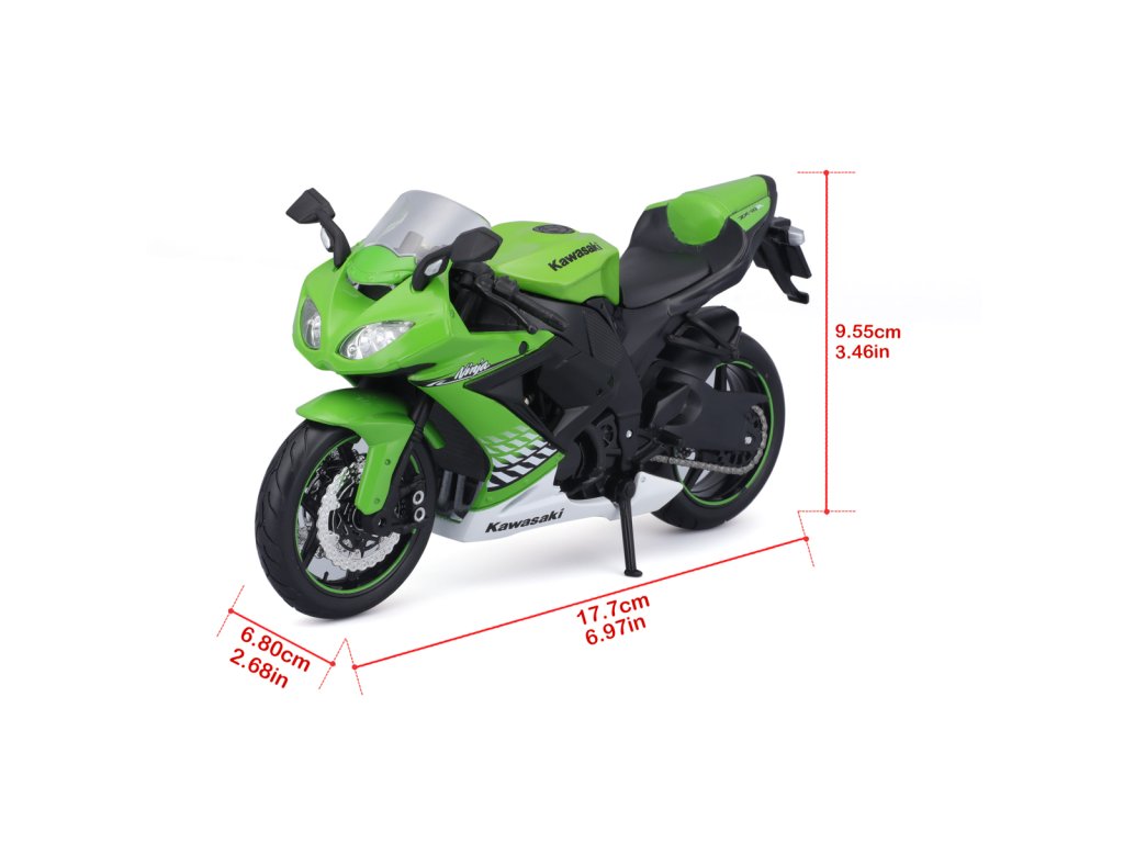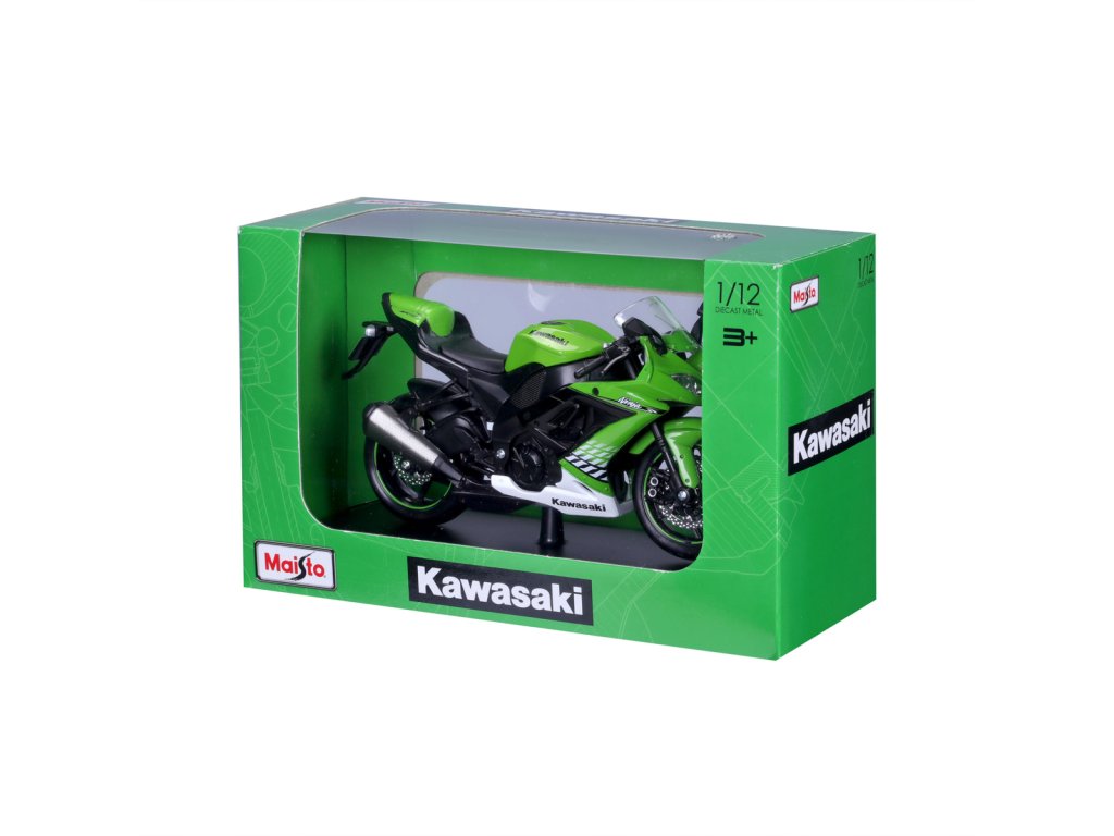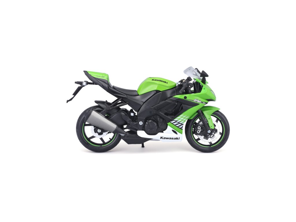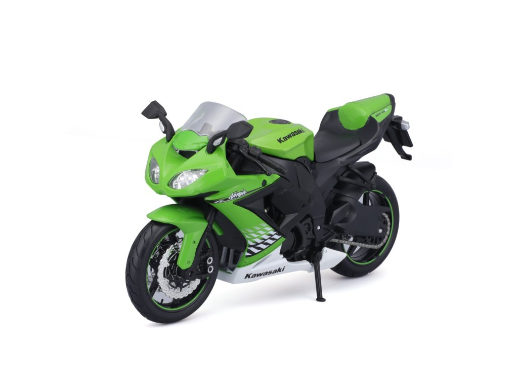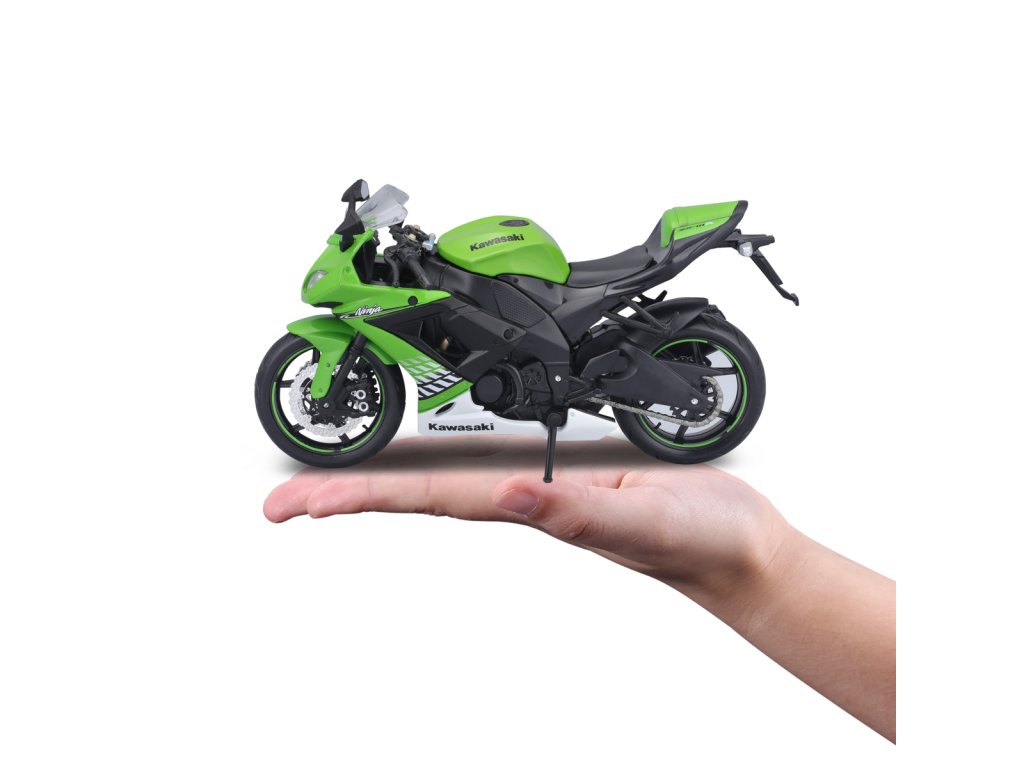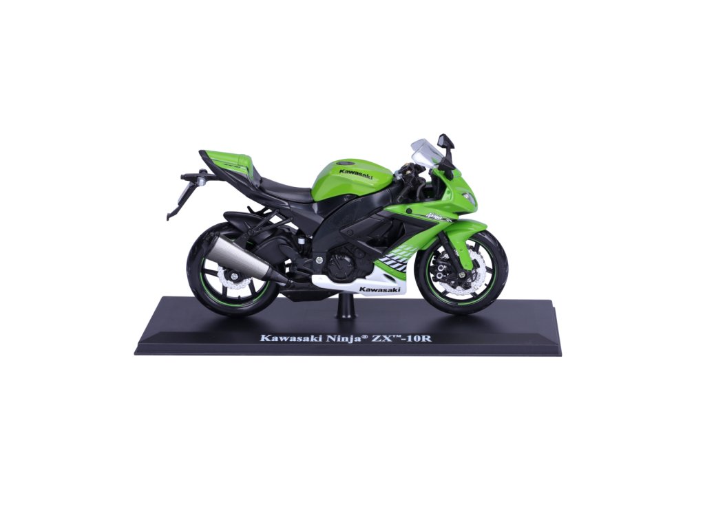 Kawasaki Ninja ZX-10R. Model motocyklu v měřítku 1:12 s autentickými detaily. Zadní odpružení s pružinami. Pohyblivý funkční stojánek. Kola, která se volně otáčejí. Balení: 22,3x13,97x8,89cm. Věk: 3+