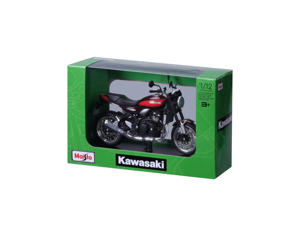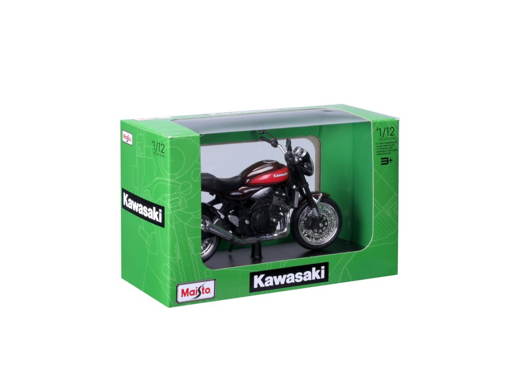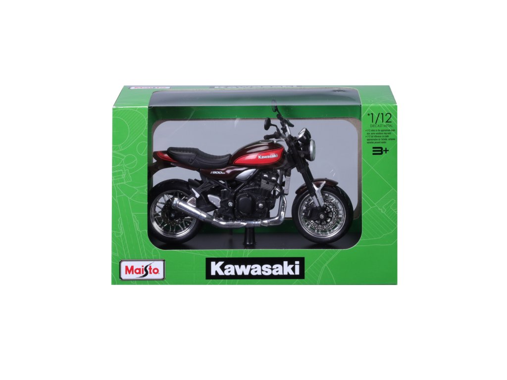 Kawasaki Z900RS. Model motocyklu v měřítku 1:12 s autentickými detaily. Zadní odpružení s pružinami. Pohyblivý funkční stojánek. Kola, která se volně otáčejí. Balení: 22,3x13,97x8,89cm. Věk: 3+