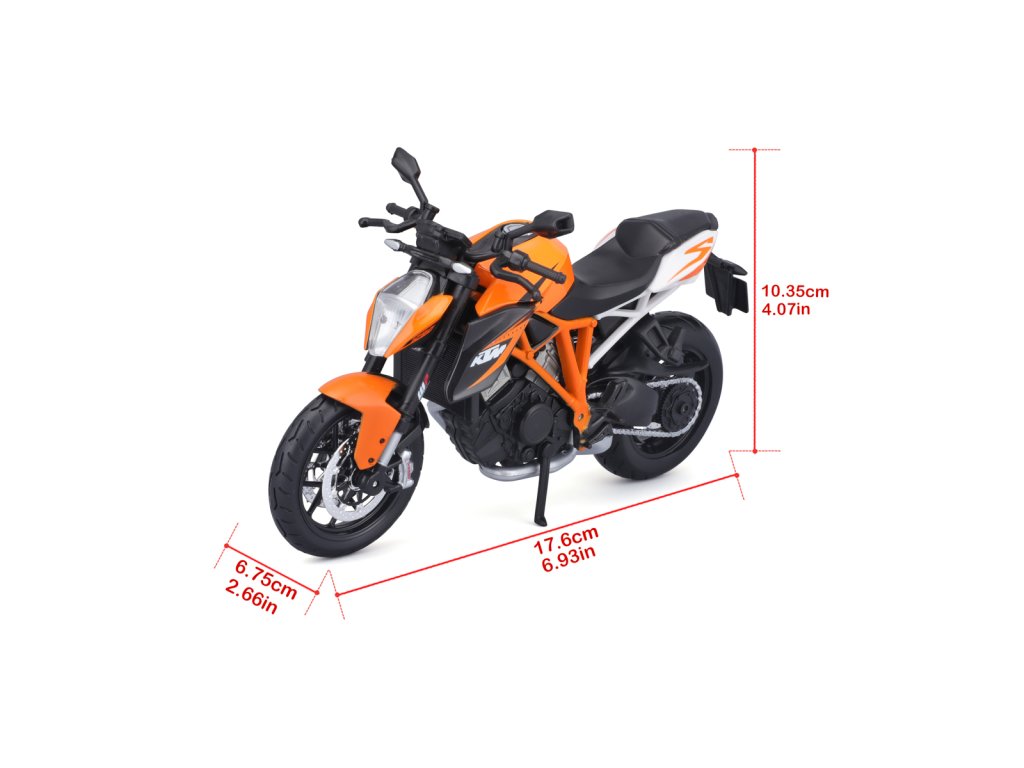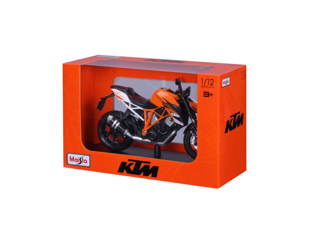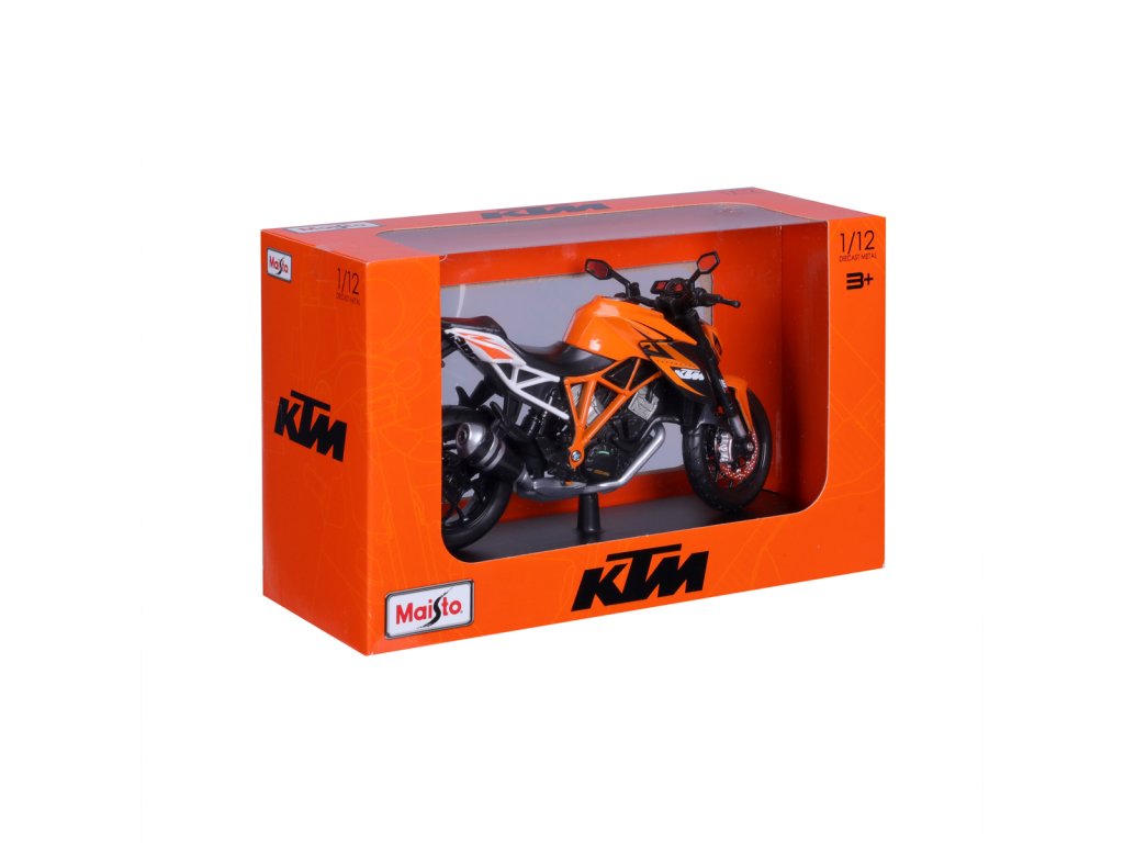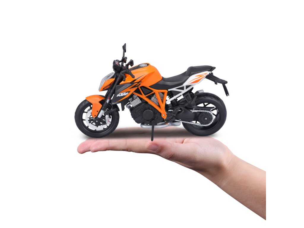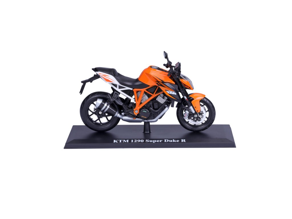 KTM 1290 Super Duke R. Model motocyklu v měřítku 1:12 s autentickými detaily. Zadní odpružení s pružinami. Pohyblivý funkční stojánek. Kola, která se volně otáčejí. Balení: 22,3x13,97x8,89cm. Věk: 3+