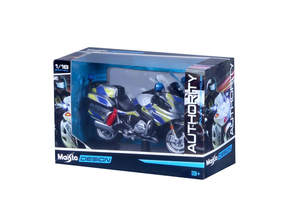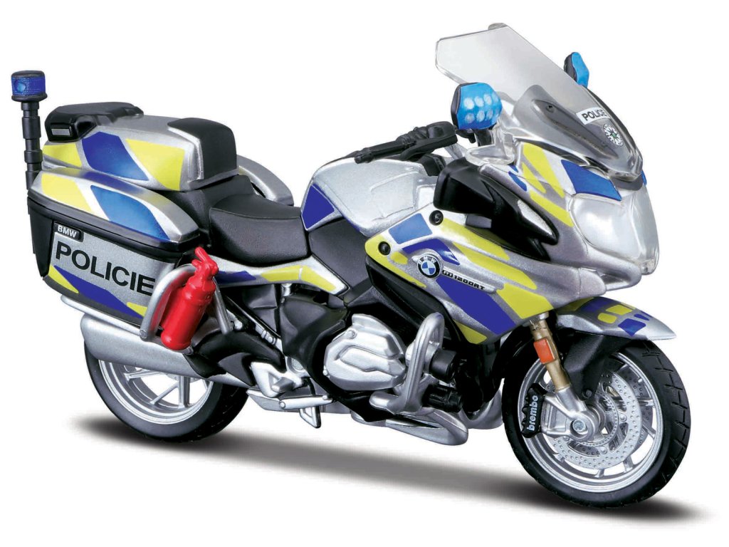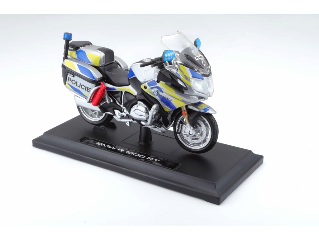 BMW R 1200 RT. Speciální model motocyklu BMW R11200RT vytvořeného přesně podle originálu policejního motocyklu BMW Policie České Republiky. Modely v měřítku 1:18 mají u svých fanoušků velkou oblíbenost pro jejich dokonalé provedení. Motocykl má otáčivá řídítka a odpruženou zadní nápravu. Rozměry balení: 17,8x10,2x7cm. Věk: 3+