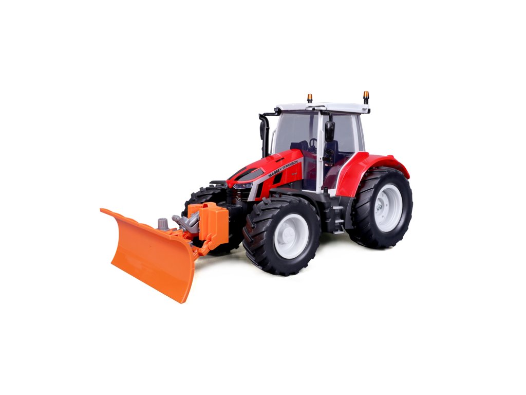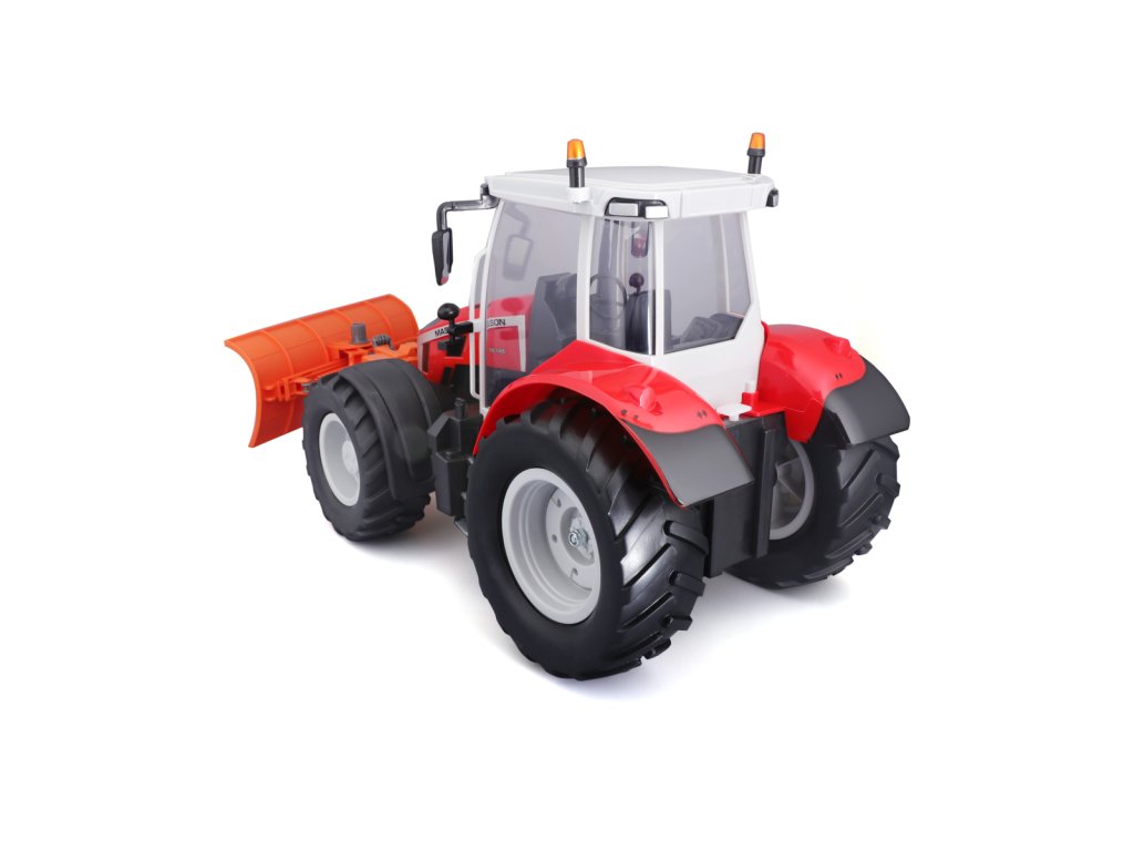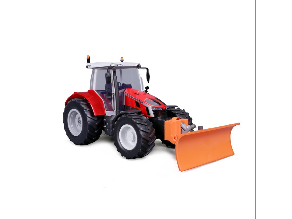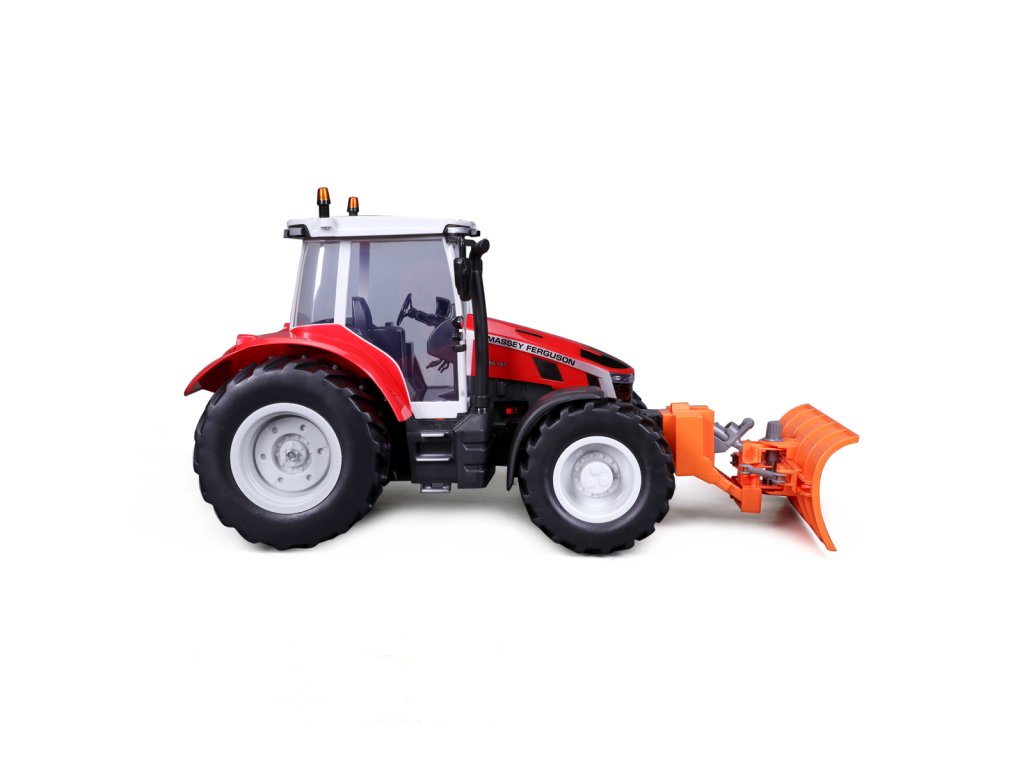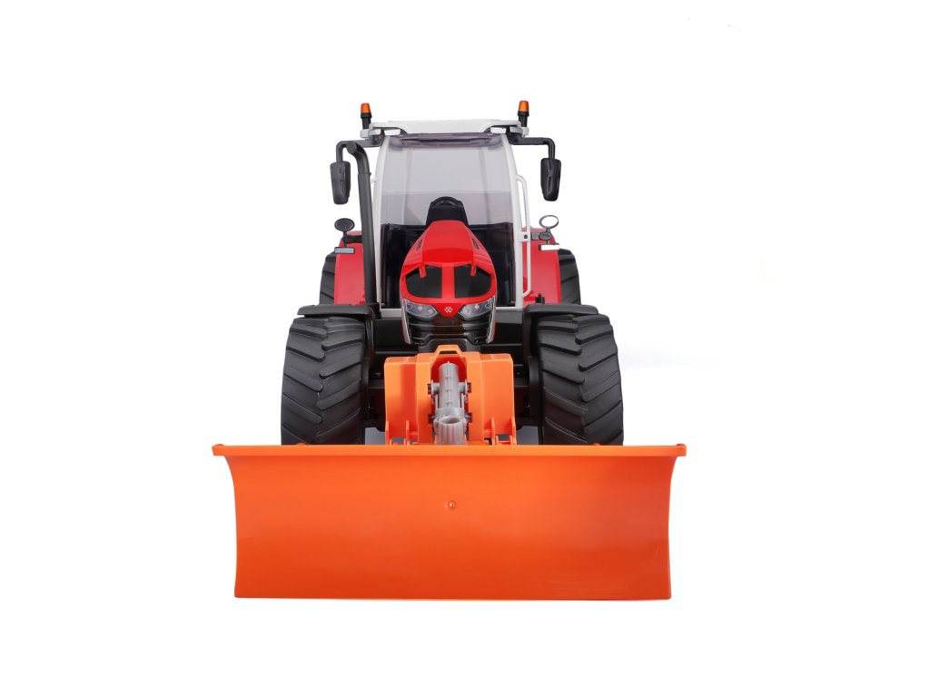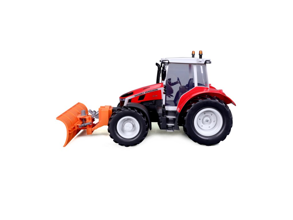 Traktor Massey Ferguson s radlicí a dálkovým ovládáním 2,4 GHz. Extrémní poměr otáčení, plně funkční ovládání, funkční světlomety. Pistolová rukojeť pro snadné ovládání. Přední a zadní konektory, řízení předních kol s detaily dezénu pneumatik. Přední radlice se dá natáčet ze strany na stranu. Měřítko 1:16. Vyžaduje 2 x AAA a 4 x AA baterie (nejsou součástí balení). Rozměr balení: 45x25x20cm. Věk: 3+