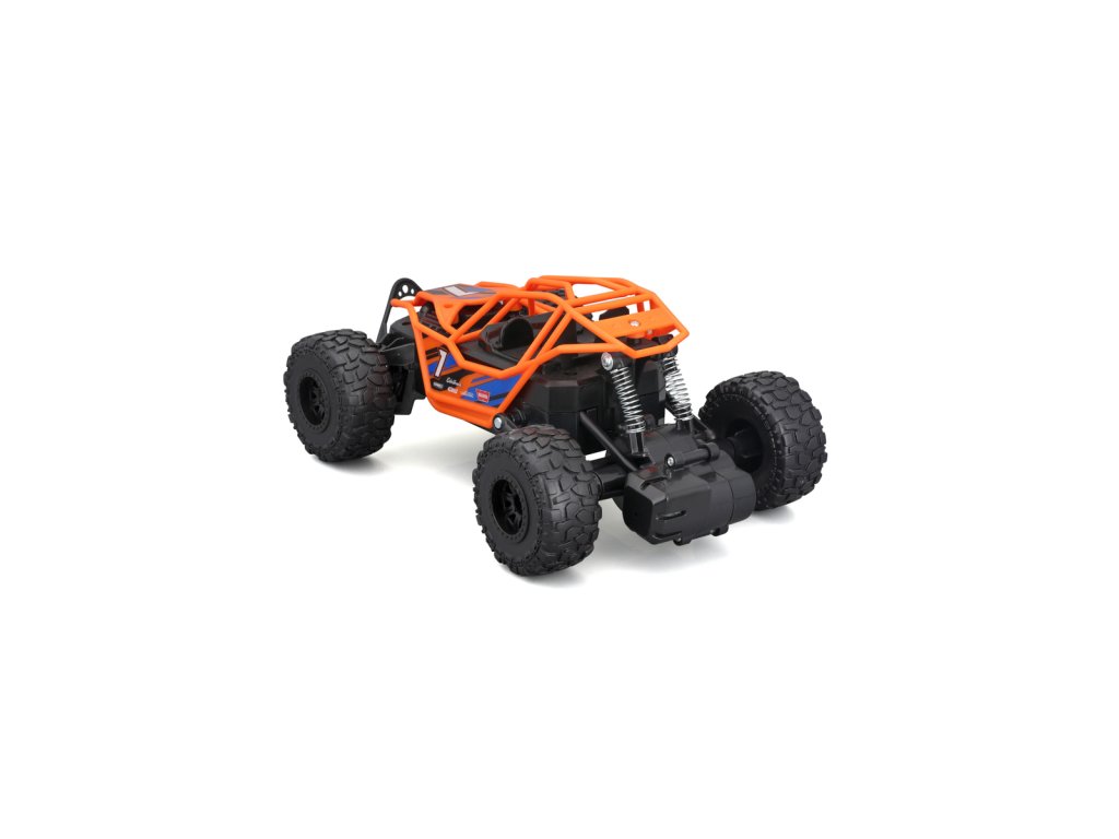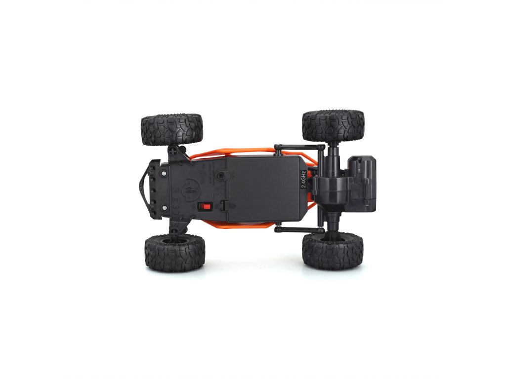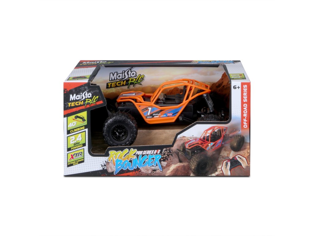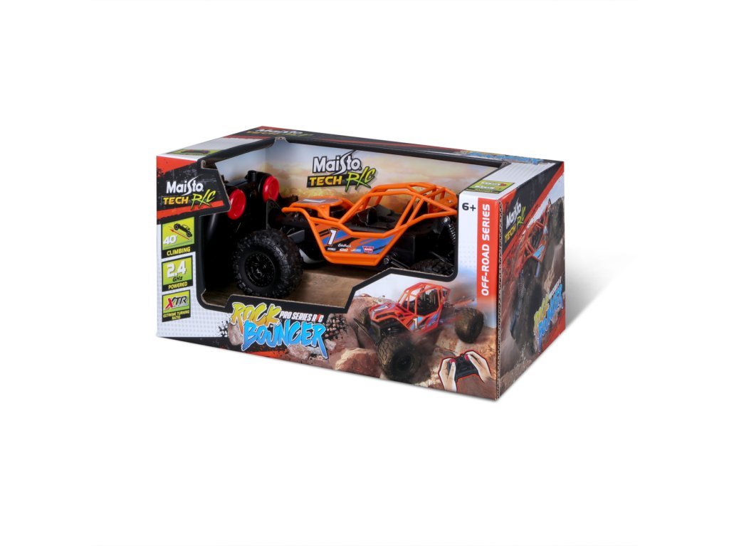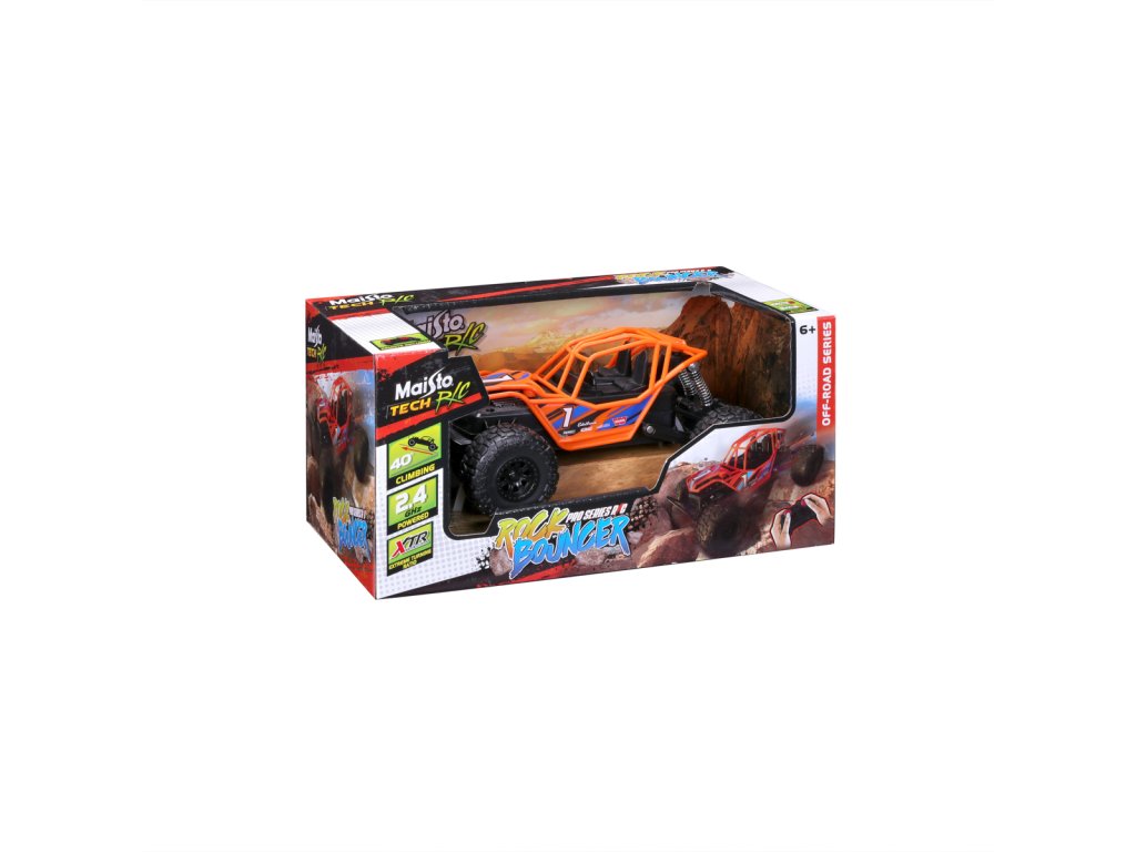 8´´ Rock Bouncer, oranžová barva. Plastový model značky Maisto na dálkové ovládání. Auto má dokonalou konstrukci a skvělé vlastnosti při jízdě v terénu. Auto funguje na 4x AA baterie (nejsou součástí). Ovladač má dosah až 35 metrů a používá 2x AAA baterie (nejsou součástí). Rozměr balení: 28x13,9x15,25cm. Věk 6+