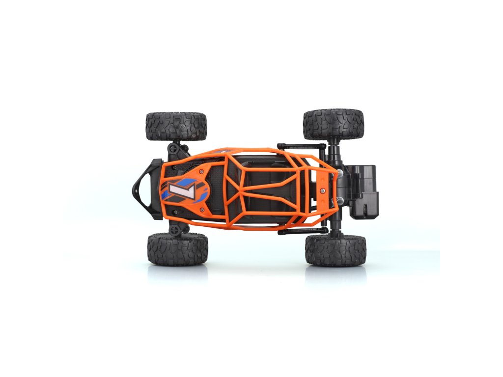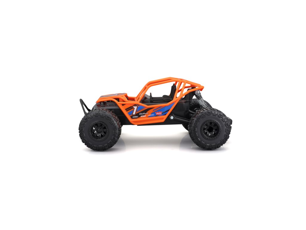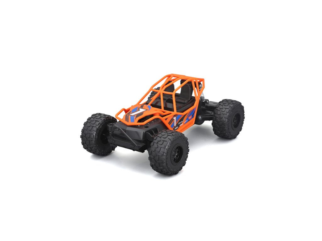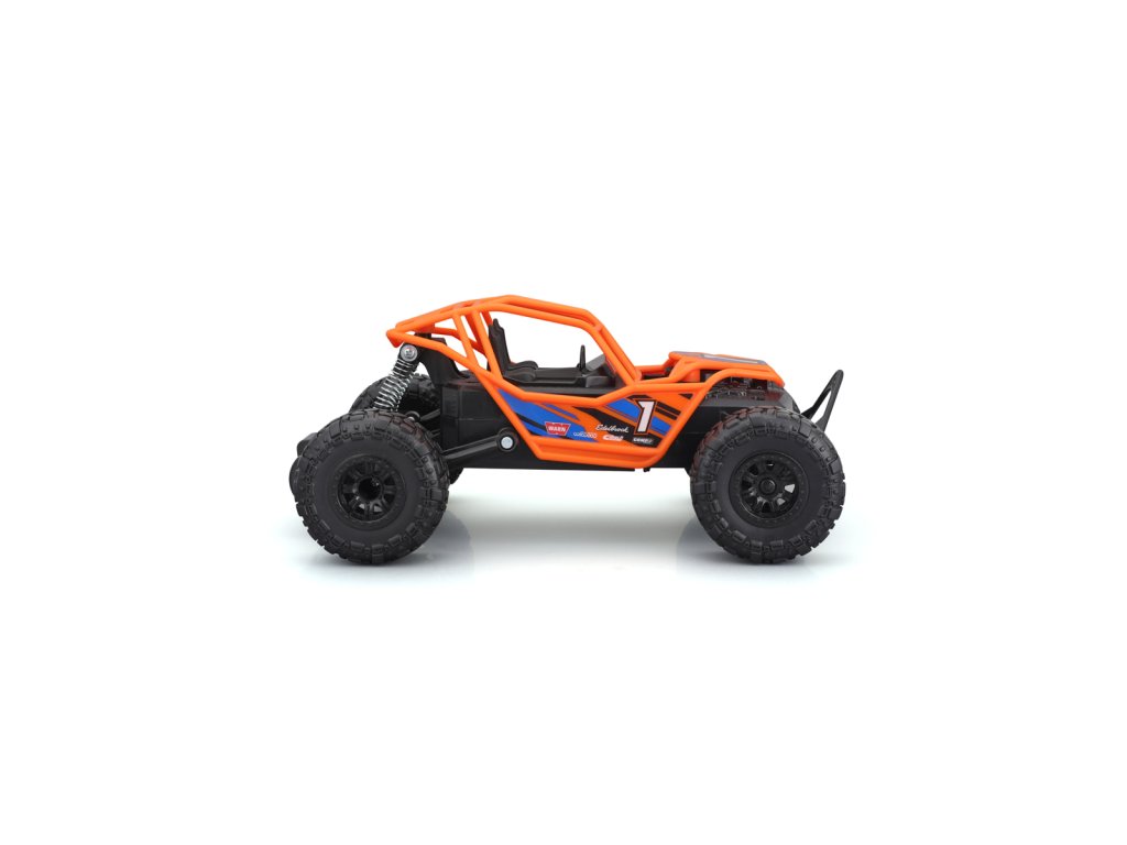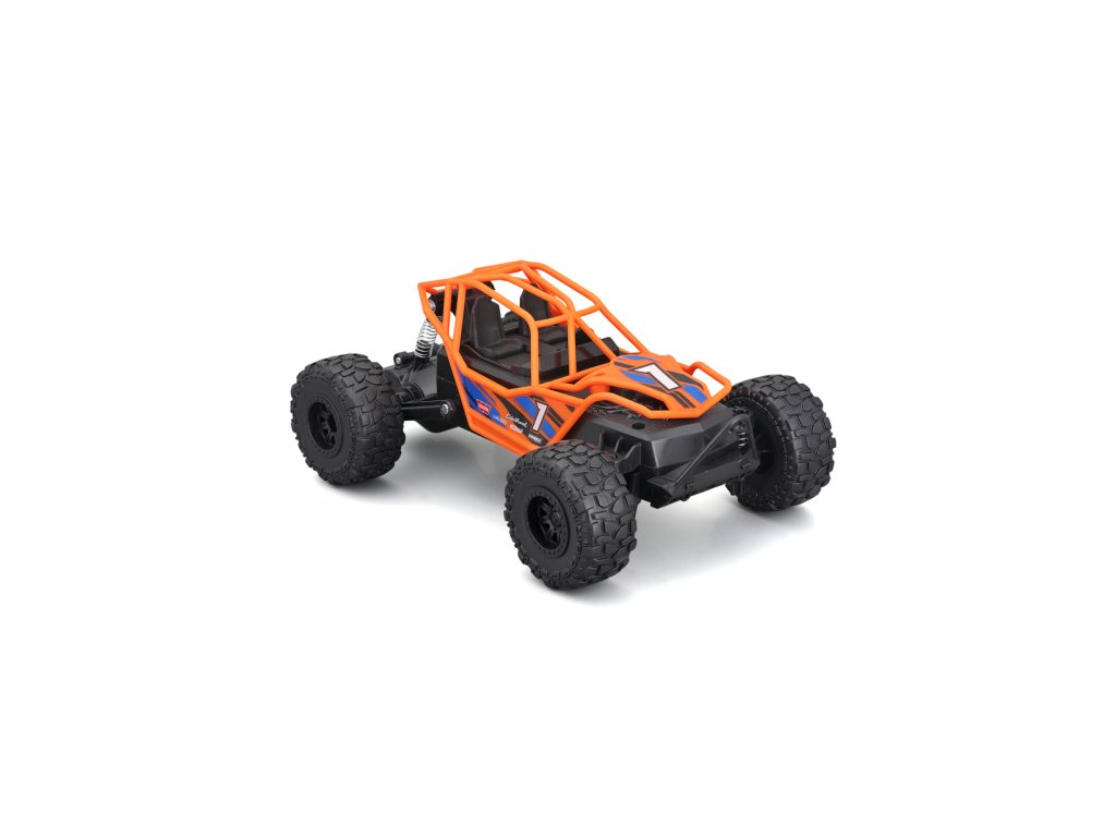 8´´ Rock Bouncer, oranžová barva. Plastový model značky Maisto na dálkové ovládání. Auto má dokonalou konstrukci a skvělé vlastnosti při jízdě v terénu. Auto funguje na 4x AA baterie (nejsou součástí). Ovladač má dosah až 35 metrů a používá 2x AAA baterie (nejsou součástí). Rozměr balení: 28x13,9x15,25cm. Věk 6+
