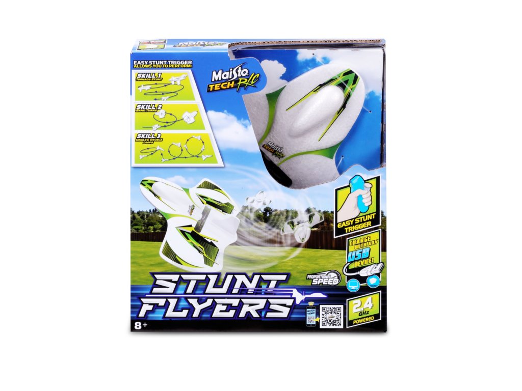 Kaskadérské RC letadlo SKY Stund Plane. Tento model letadla je vyroben s polystyrenu, je lehký a krásně ovladatelný. Ovladač je na 2x1,5V AAA (LR03/R03) baterie a v samotném autíčku je vestavná nabíjecí LI-ION baterie. Baterie jsou součástí balení. Letadlo má 3 módy letu: smyčka&dvojitá smyčka, přetočení a tornádo trik. Rozměr výrobku: 21x18,5cm. Věk: 8+.