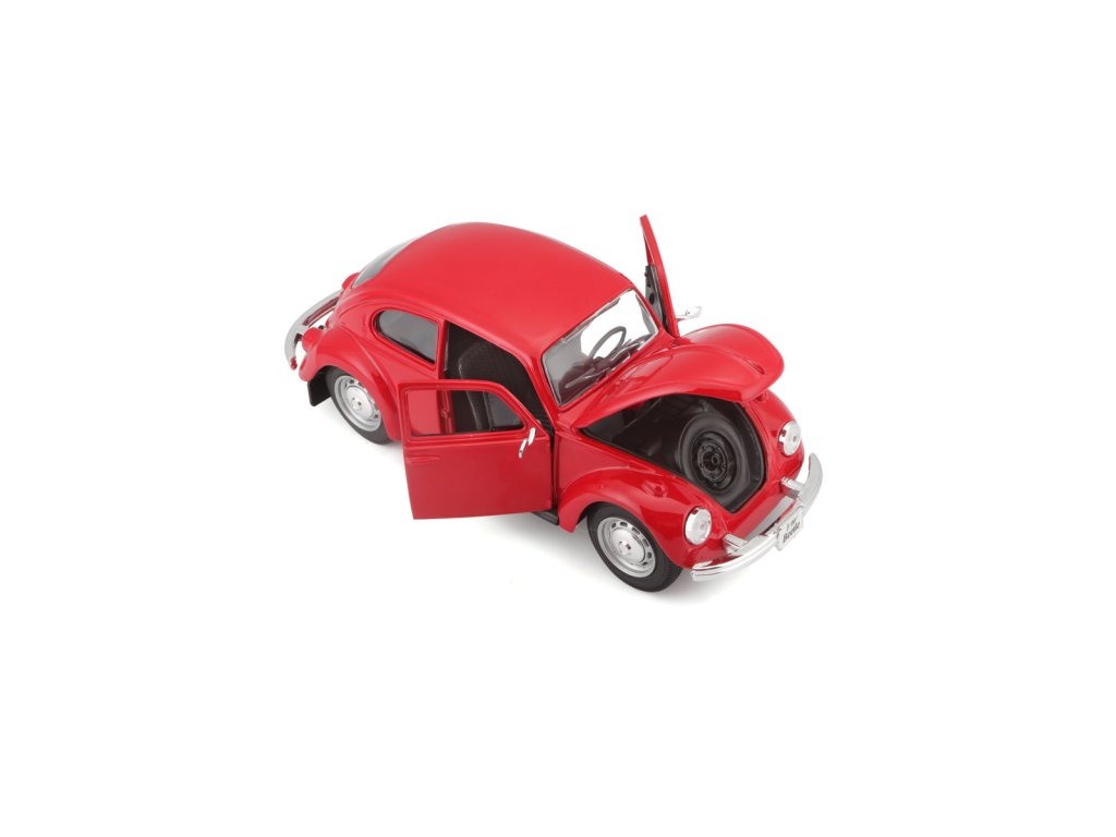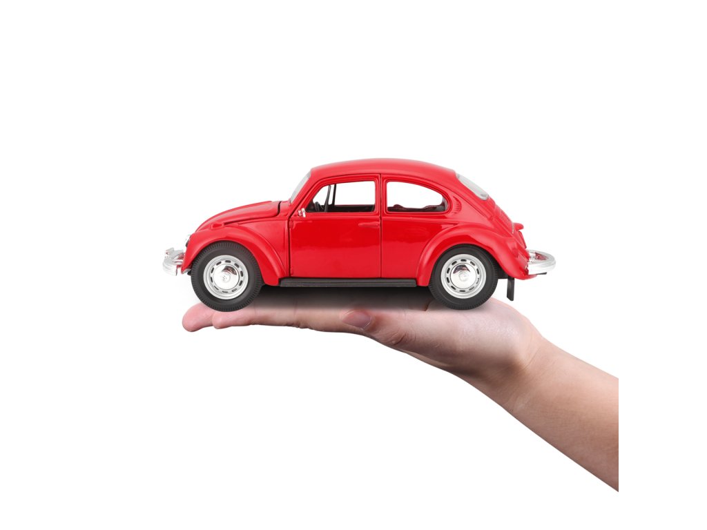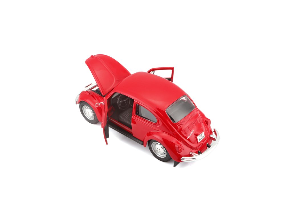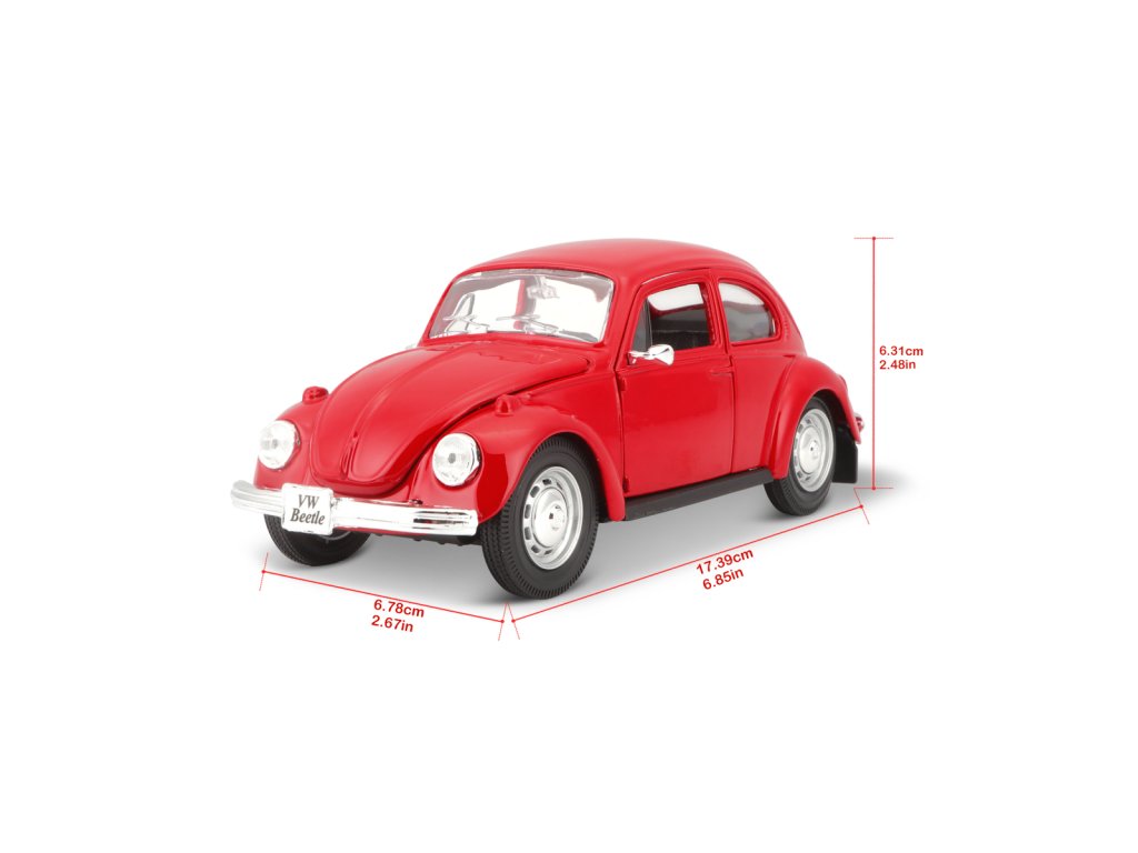 Volkswagen Beetle, červená. Kovové modely Maisto v měřítku 1:24 patří mezi nejoblíbenější. Mají velmi dokonalé detailní provedení jednotlivých částí a kvalitní barevné provedení. Má otevíratelnou přední kapotu a přední dveře. Baleno v krabičce. Nevhodné pro děti do 3let. Rozměry balení: 22,8x10,5x11,4cm. Věk: 3+