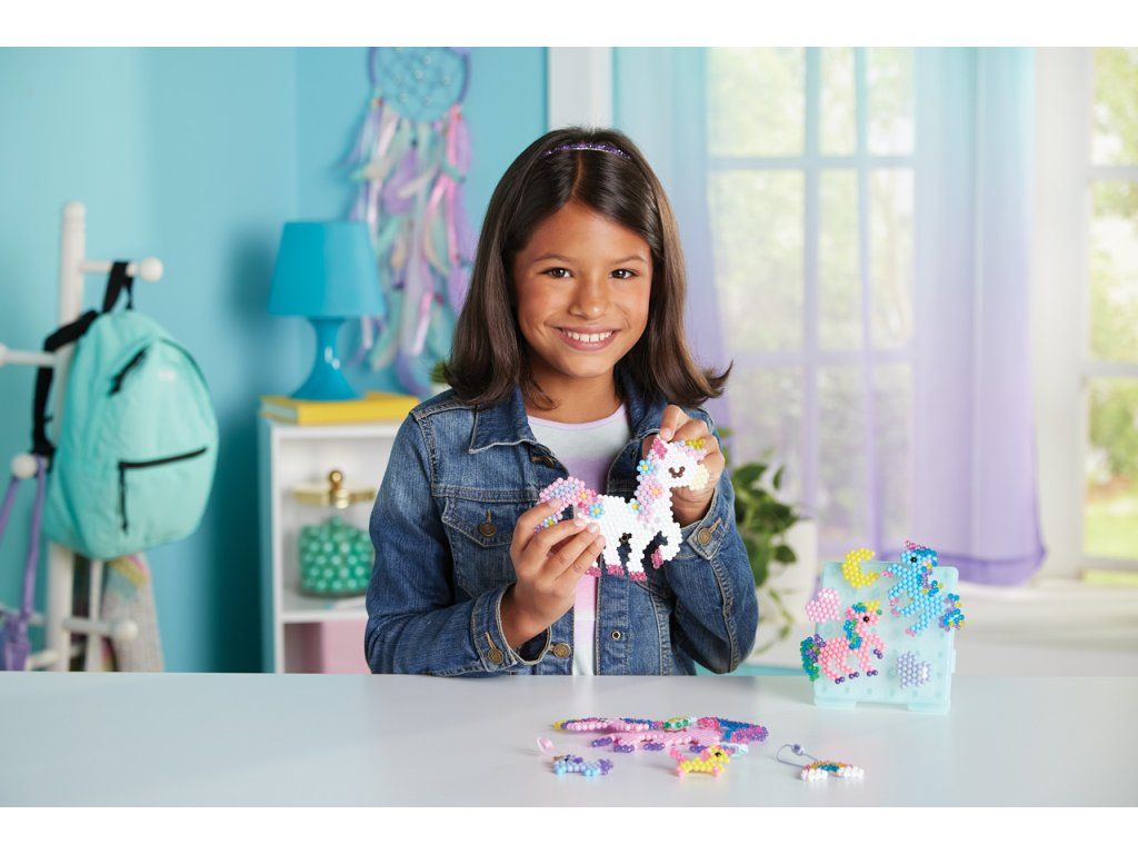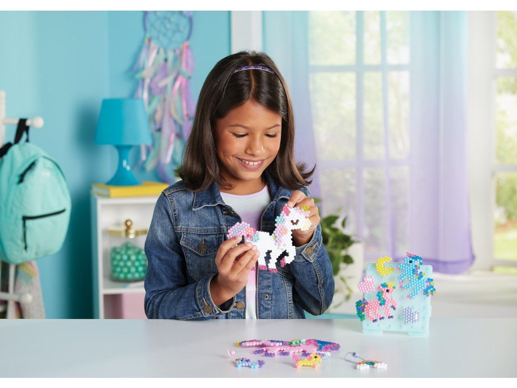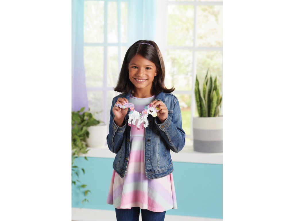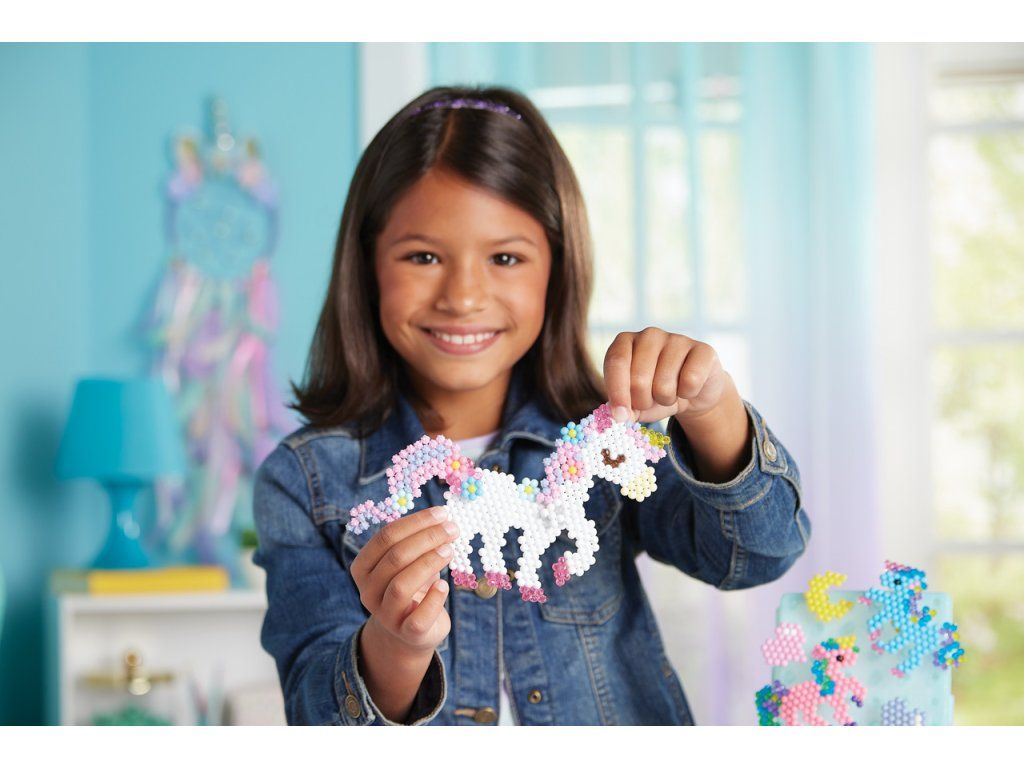 Sada korálků k vytvoření jednorožců je souprava pro chlapce i dívky. Vytvořte si z více než 1500 korálků ve 24 barvách své oblíbené jednorožce! Podle šablony jednoduše uspořádejte korálky a postříkejte vodu z rozprašovače - hotový výrobek není potřeba zažehlovat. Krásné mistrovské dílo je rychle hotovo! Ideální dárek pro děti! Velikost sady: 27 x 24 x 4,5 cm. Váha: 210 g. Vhodné pro děti od 4 let.