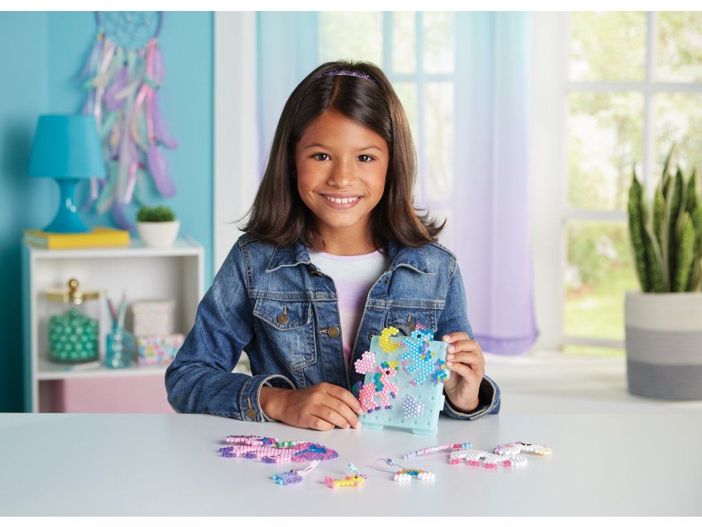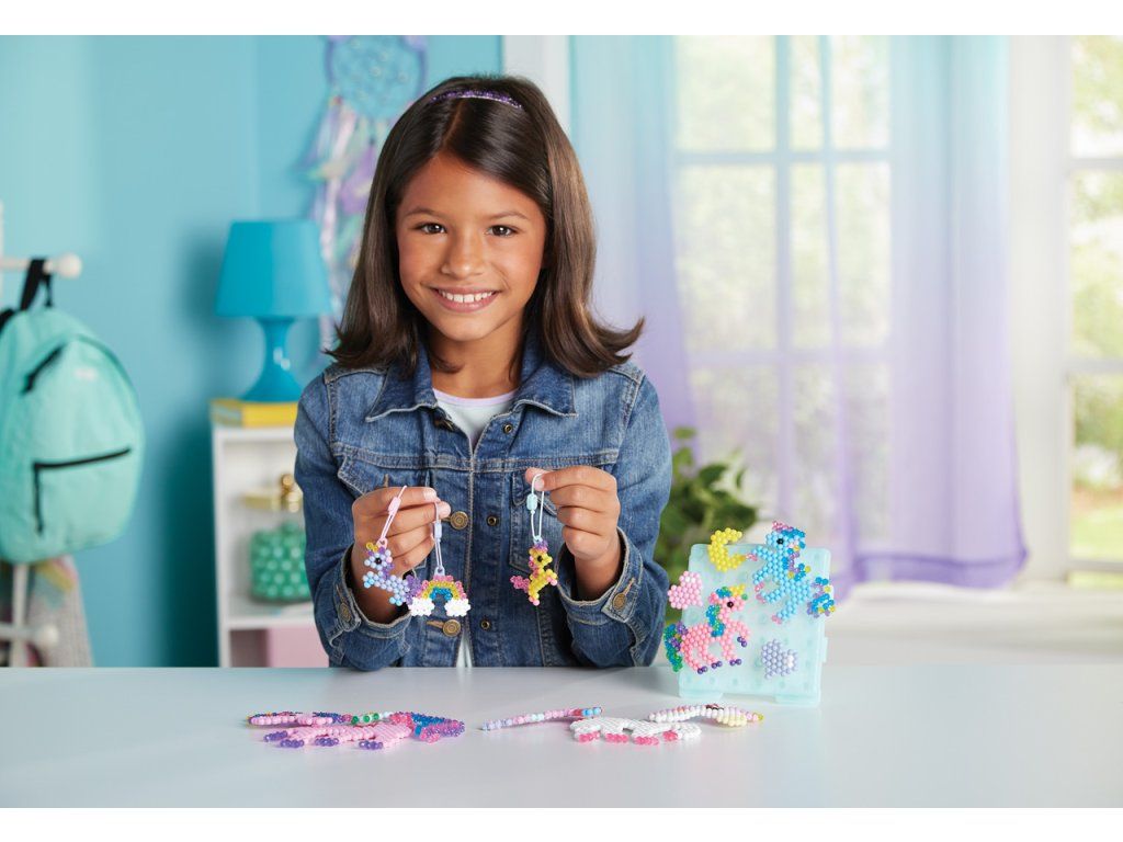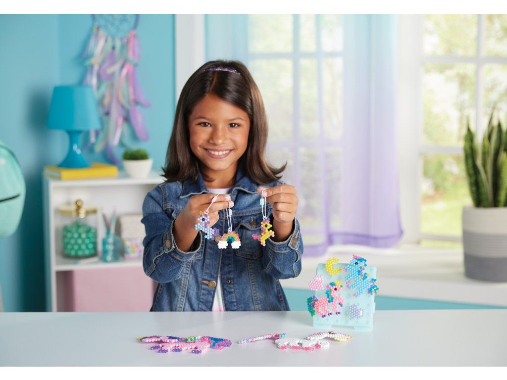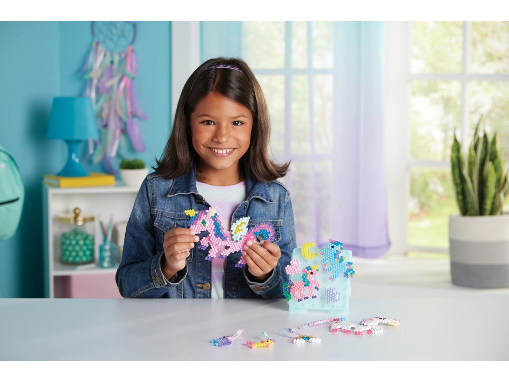Sada korálků k vytvoření jednorožců je souprava pro chlapce i dívky. Vytvořte si z více než 1500 korálků ve 24 barvách své oblíbené jednorožce! Podle šablony jednoduše uspořádejte korálky a postříkejte vodu z rozprašovače - hotový výrobek není potřeba zažehlovat. Krásné mistrovské dílo je rychle hotovo! Ideální dárek pro děti! Velikost sady: 27 x 24 x 4,5 cm. Váha: 210 g. Vhodné pro děti od 4 let.