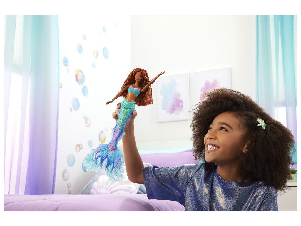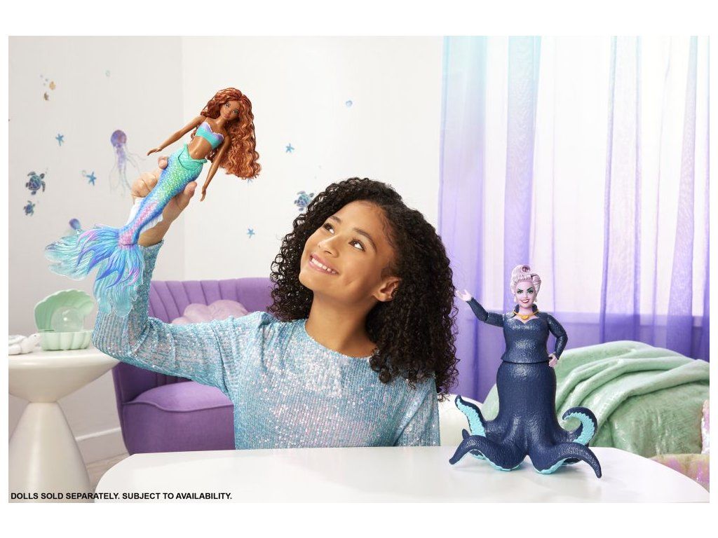 Prozkoumejte kouzelný svět Malé mořské víly novým způsobem! Panenky s krásnými vlasy jsou inspirované hraným filmem společnosti Disney Malá mořská víla. Panenka mořské víly Ariel s tvarovaným vrškem má odnímatelnou perleťovou ocasní ploutev. Panenka, která představuje Ariel jako princeznu na zemi, má krásné modré šaty a odnímatelné botky. Panenky se prodávají samostatně dle aktuální nabídky.