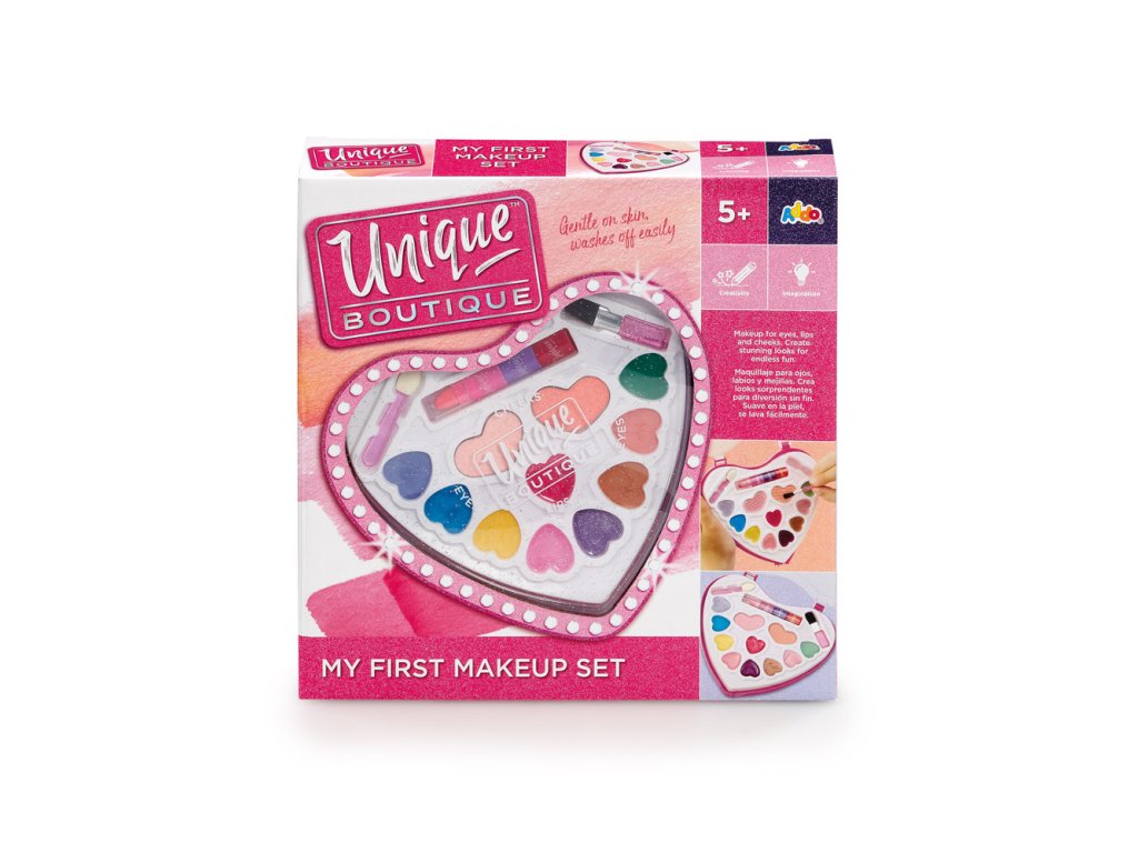 Párty na konci týdne? Ohrom své přátele novým glamour vzhledem vytvořeným pomocí stínů a lesku na rty Unique Boutique. Make-up je bezpečný a snadno omyvatelný! Sada obsahuje kufřík ve tvaru srdce, lesk na rty a mnoho odstínů na oči a tváře. Rozměr srdíčka cca: 14,3 x 15,2 x 2,3 cm. Rozměry balení: 25 x 30 x 6 cm. Nevhodné pro děti do 36 měsíců. Doporučený věk: 5-10 let.