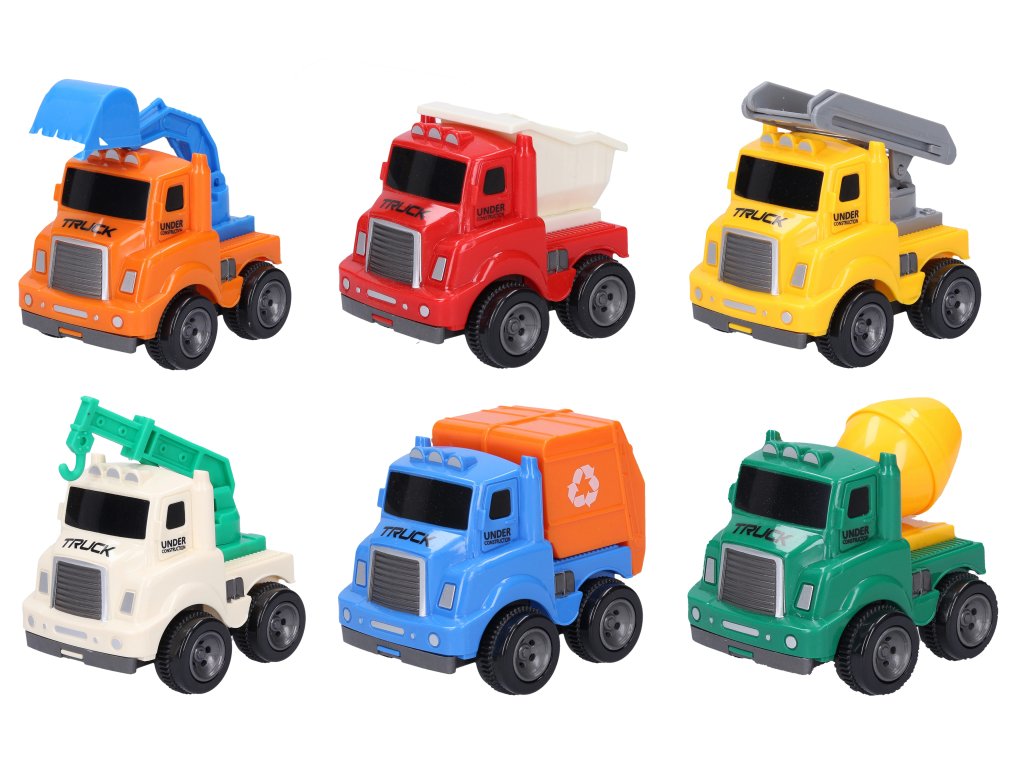Plastové dopravní prostředky jezdí na zpětné natažení a upoutají svým roztomilým vzhledem.