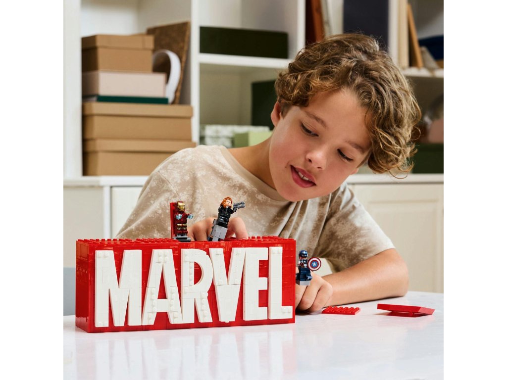 Stavebnice LEGO® Marvel 76313 Logo MARVEL a minifigurky představuje kvalitní sběratelský výstavní model s 5 minifigurkami Avengers a poslouží jako skvělý dárek pro děti a fanoušky superhrdinů od 12 let. Stavebnice loga MARVEL se skládá z výraznýchčervených a bílých kostek. Děti stisknou 3 samostatná tlačítka v horní části loga a z modelu vyskočí minifigurky Avengerů Hulka, Thora, Iron Mana, Black Widow a Kapitána Ameriky, se kterými se děti vydají na akční dobrodružství. Každou minifigurku lze snadno vrátit do původní polohy. Stavitelé můžou přibližovat a otáčet modely ve 3D a sledovat svůj pokrok pomocí zábavné a intuitivní aplikace LEGO Builder pro ještě větší porci digitální zábavy.