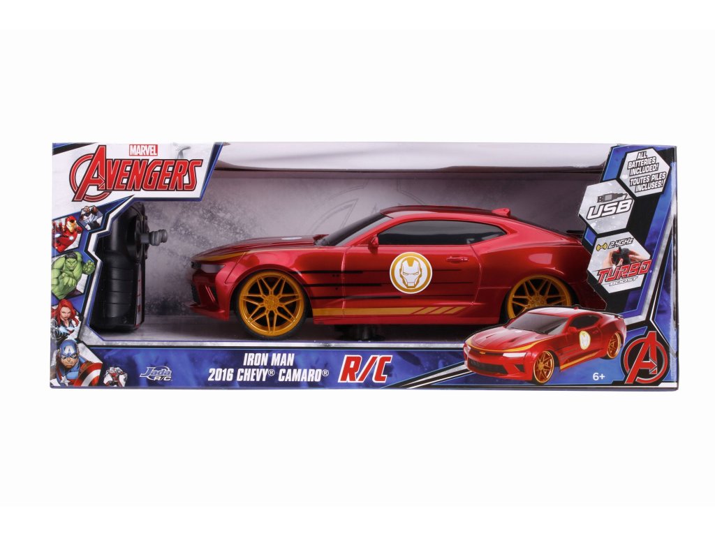 Chevy Camaro z roku 2016 přebírá své stylistické prvky přímo z obrněného Avenger: IRON MAN. Stylové RC auto v měřítku 1:16, vybavené technologií nabíjení USB a všemi bateriemi, je připraven ihned k použití. 2-kanálové, frekvence 2,4 GHz, funkce Turbo, jezdí vpřed-vzad a vlevo-vpravo, v červené barvě. Rychlost 9 km/h. Délka 29 cm.