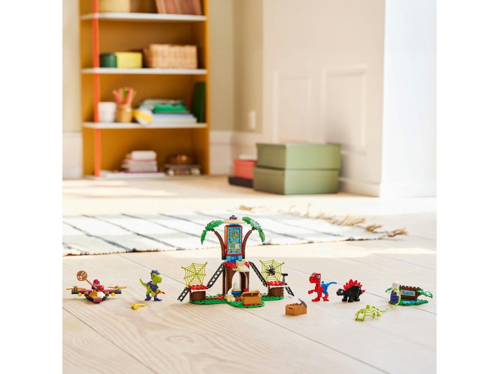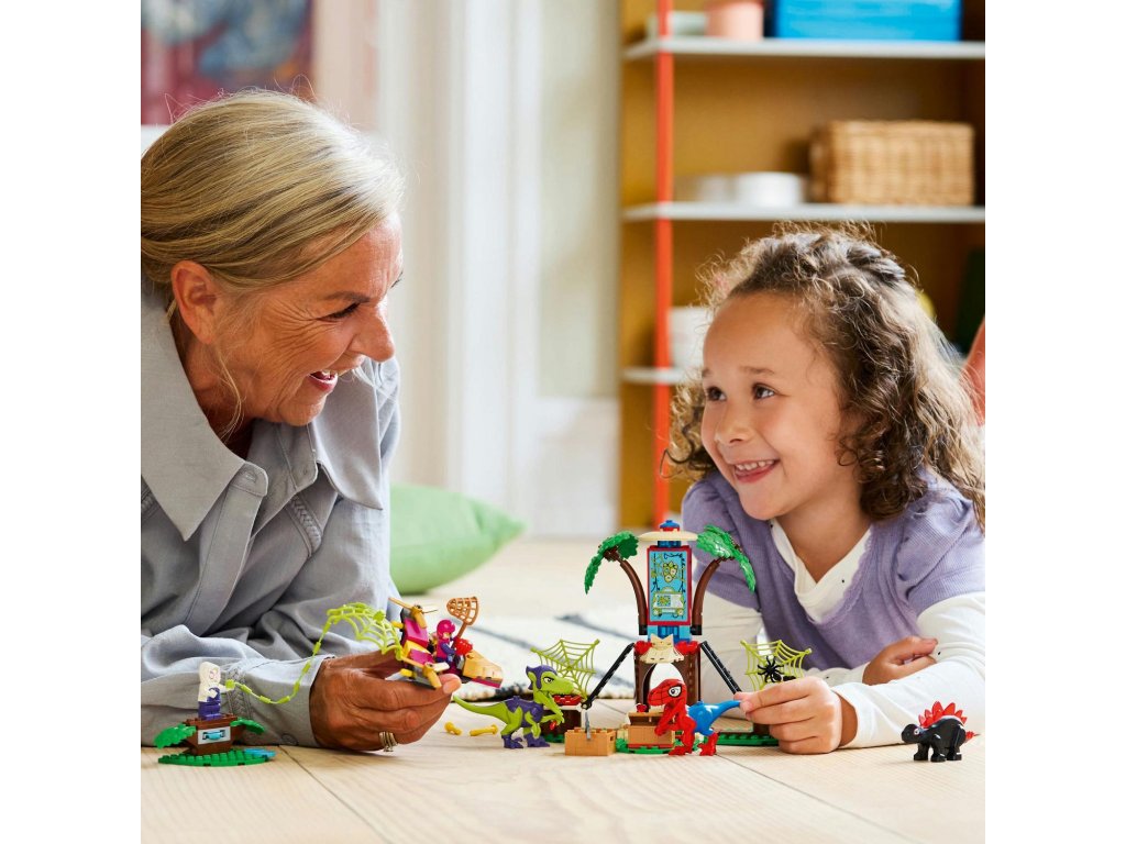 Děti od 4 let, které milují superhrdiny, dinosaury a sestavitelné hračky, si zamilují dobrodružnou stavebnici LEGO® Marvel (11200) Spidey a jeho úžasní přátelé Spidey, Gobby a raptoří bitva na základně na stromě. Domek na stromě má 3 plošiny, včetně jedné s velkou obrazovkou zobrazující misi týmu. Nechybí minifigurky Trapster, Ghost-Spider a Trace-E a sestavitelné figurky dinosaurů Spidey-Rexe, Gobby-Raptora a Dino-Spina. Trapsteřino letadlo má 2 vystřelovače. Mezi doplňky najdete velké pavučiny, červené diamanty, truhlu s pokladem, mapu k pokladu, klobásu, vejce, kuřecí stehno, dalekohled a sekeru. Součástí je také barevný obrázkový návod na stavění, který přináší intuitivní pokyny. Jednotlivé sáčky obsahují kostky a velkou začátečnickou kostku, díky kterým se děti můžou hned pustit do stavění. Stavebnice LEGO pro děti od 4 let představují skvělý způsob, jak dospělí můžou sdílet zábavu při stavění se svými potomky.