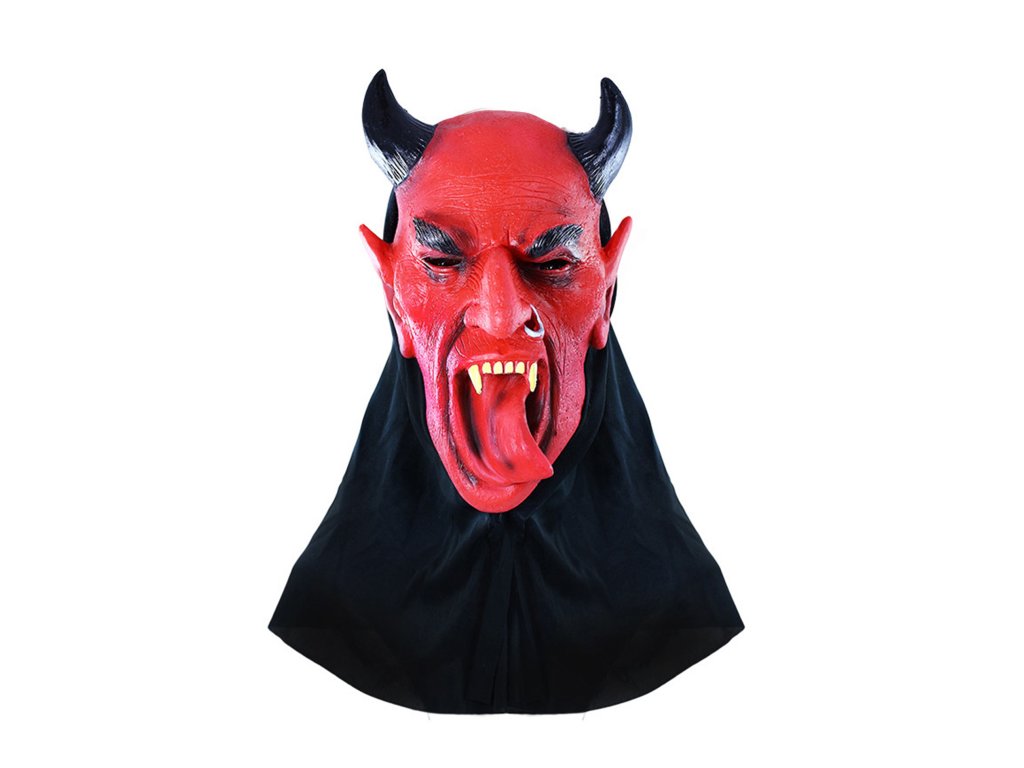 Ďábelská maska na obličej s motivem čerta je senzační doplněk na karnevalový večírek nebo vánoční besídku! Maska je vyrobena z vinylu.UPOZORNĚNÍ! Maska je částečně pomačkána.