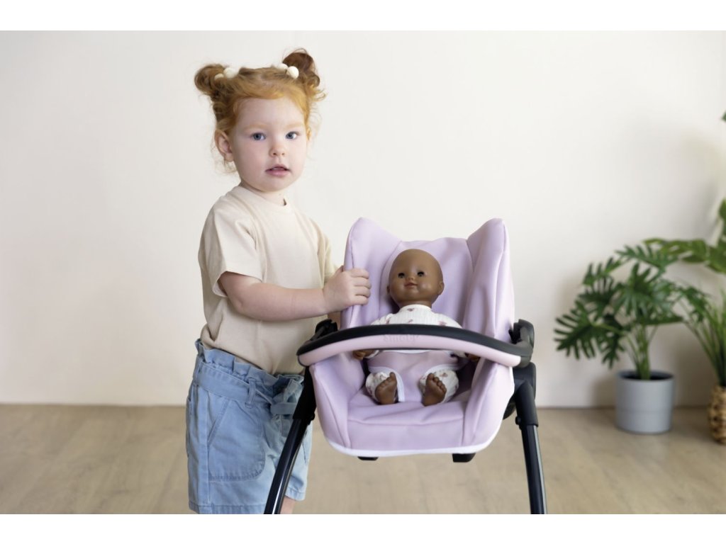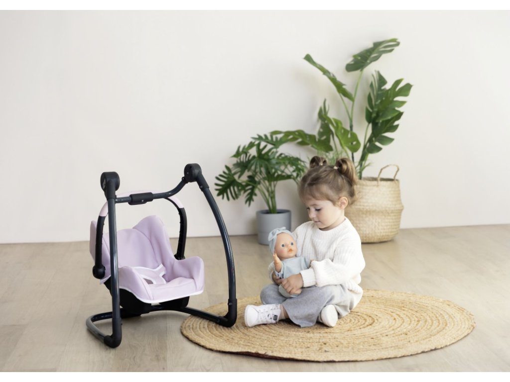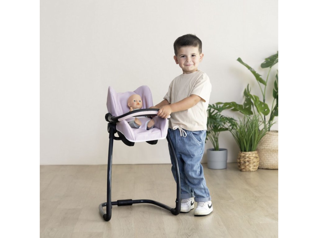 Autosedačka Maxi-Cosi 3 v 1 pro panenky. Při zavěšení sedačky na konstrukci je rázem houpačka pro panenku do velikosti 42 cm. Otočením konstrukce získáte vysokou jídelní židličku s pultíkem. Rozměry (DxŠxV): 43 x 41 x 72 cm.