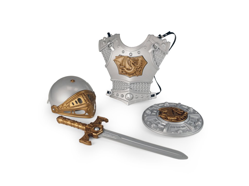 Dětská rytířská sada, která promění každé dítě ve statečného obránce svého království! Tato kompletní výbava obsahuje vše, co malý rytíř potřebuje pro svá dobrodružství. S ochranným štítem v ruce je připraven čelit každému nebezpečí, zatímco meč mu dodá odvahu v boji. Přilba ho ochrání před útoky, a díky rytířské vestě se bude cítit jako skutečný bojovník. Stačí se obléknout a dobrodružství může začít!