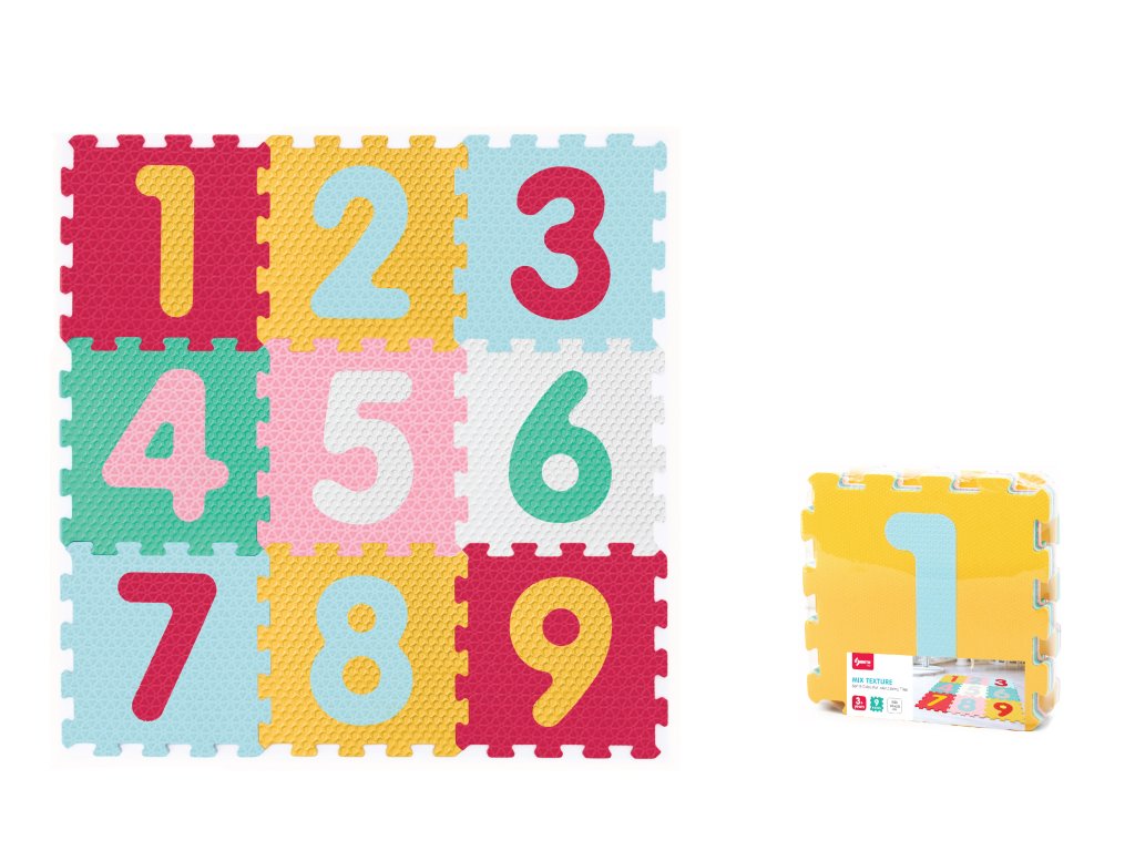 Měkké bloky 9ks. Velikost 32x32cm. Bloky mají vyjímatelná čísla.