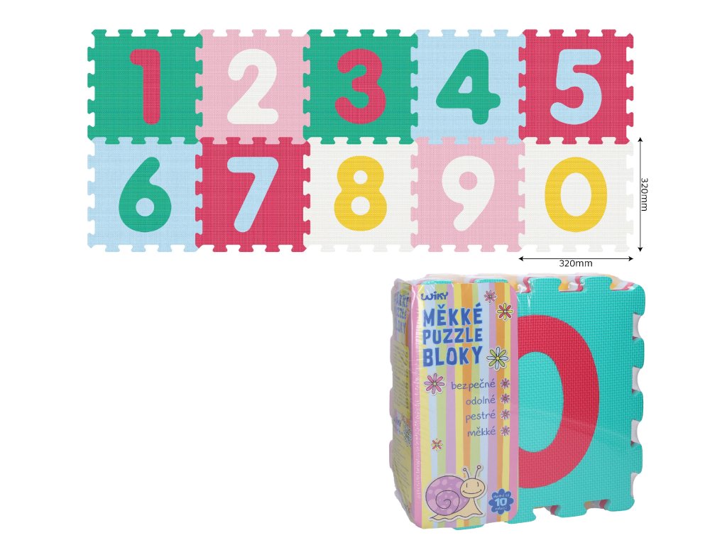 Měkké bloky číslice. Balení obsahuje 10 ks (číslice 0-9). Rozměry 32x32 cm. Číslice je možné vyjmout.