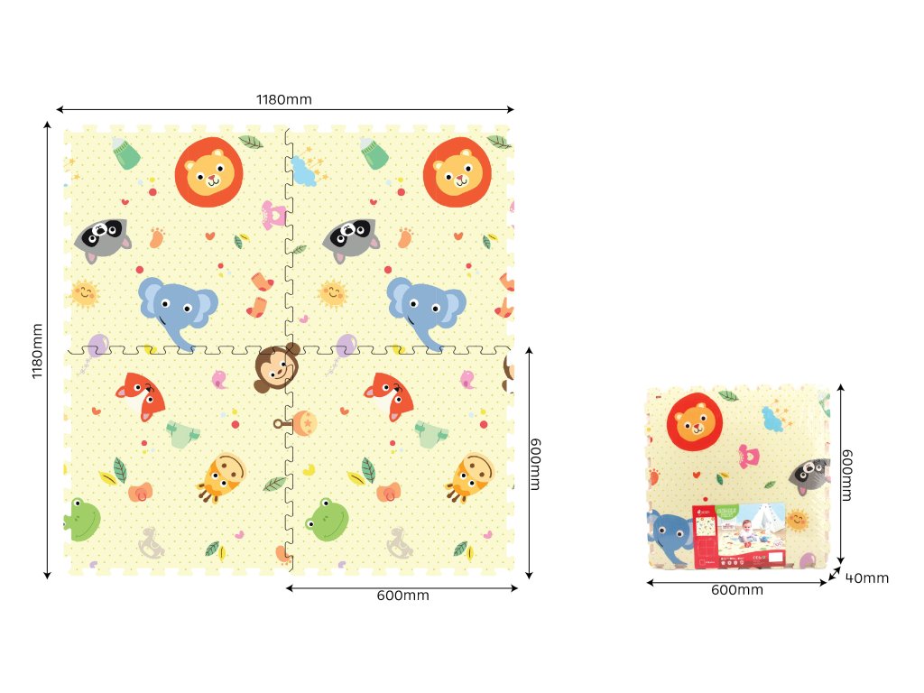 Měkké bloky, 4 ks, motiv zvířátka. Rozměry 60 x 60 cm. Tloušťka 1 cm.
