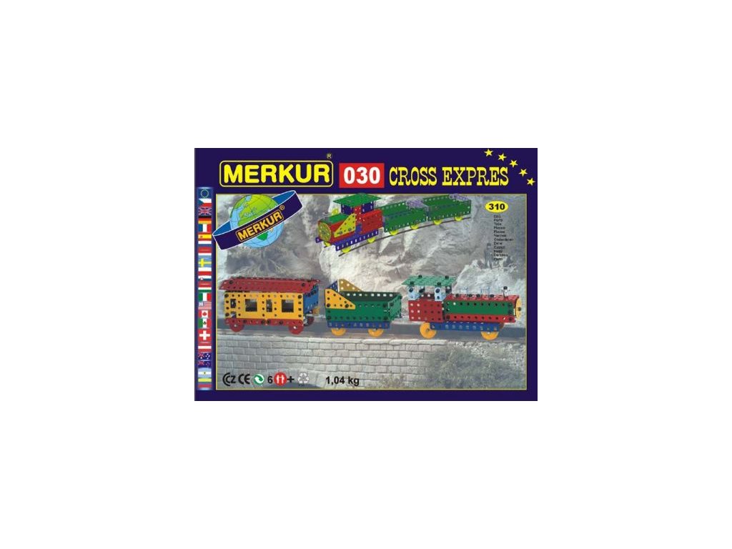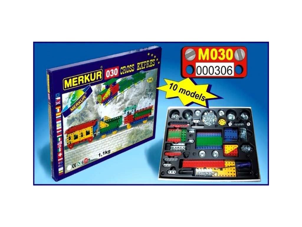 Stavebnice Merkur M 030 CROSS Expres - ze stavebnice je možné podle návodu současně postavit lokomotivu, tendr a osobní vagón.