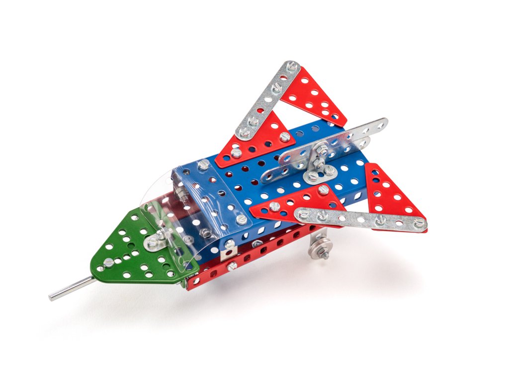 Stavebnice Merkur M 015 Raketoplán - ze stavebnice je možné sestavit podle návodu 10 různých modelů.