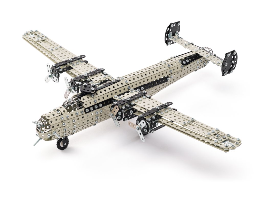 Limitovaná edice stavebnice Bombardér B-24 Liberator k oslavě výročí 100 let stavebnice Merkur a k poctě českého letce a rodáka z Police nad Metují Františka Švejdara. Stavebnice obsahující 902 dílků vychází v limitované sérii 2 500 ks, a kromě modelu letadla s rozpětím křídel neuvěřitelných 55,5 cm se můžete těšit i na poutavý příběh, který je součástí krásně zpracované brožury. Jedinečnost stavebnice podtrhuje také přiložený podepsaný certifikát s číslem stavebnice. 100 ks z 2 500 mají navíc limitovanou podepsanou Merkur skicu. S obtížností stavění na levelu 5 doporučujeme stavebnici pro děti od věku 8 let a optimálně s asistencí dospělého. Rozměr balení: 35 x 27 x 8 cm. Rozměr sestaveného modelu: 55,5 x 10,5 x 46 cm. Věk: 8+