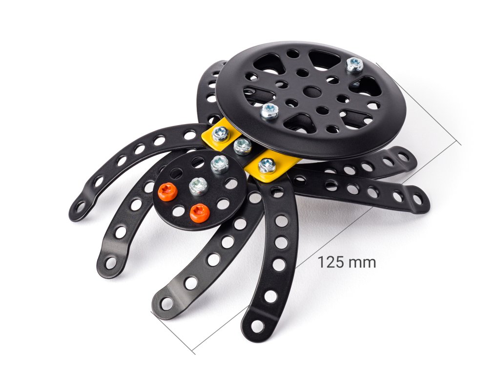 Kovový model Pavouka z kolekce hmyzáků obsahuje součástky nutné pro sestavení pavouka.V balení najdete podrobný návod, Merkur sadu nářadí a unikátní Merkur díly. Merkur díly jsou univerzální a tak vás neomezí v jakékoli modifikaci a nápadu. Stavebnici tak můžete sestavit podle přiloženého návodu nebo čistě podle svých představ. Se sestavenými modely si lze hrát, jsou velmi odolné. Podporuje a rozvíjí manuálních schopnosti, logické myšlení, soustředění. Rozměr balení: 18x13,5x5cm cm.Rozměr výrobku: 15x10x9cm cm.Počet dílků:41. Nevhodné pro děti do tří let. Doporučený věk: 5+