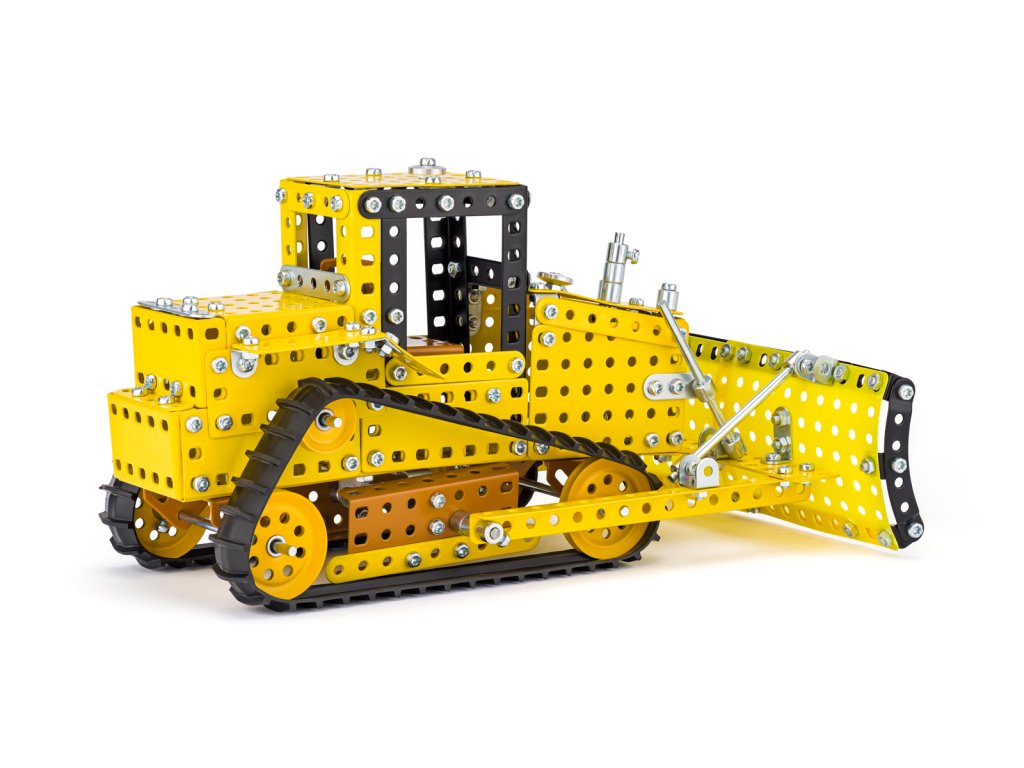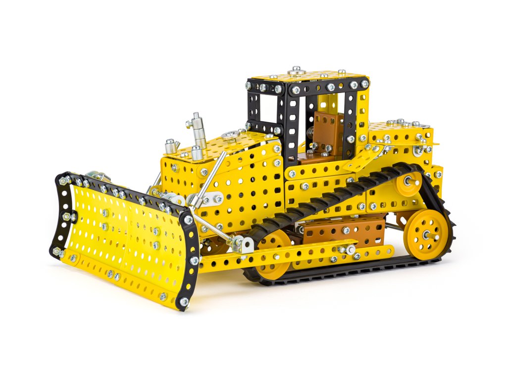 Z této stavebnice Merkur je možné dle návodu sestavit model buldozeru. Pro kompletaci přední radlice jsou doplněny plastové díly, pro snadné vytvarování. Malí konstruktéři mohou sestavit i model dle svých představ, fantazii se meze nekladou. Stavebnice obsahuje 504 dílků včetně šroubováčku a šroubovacích spojů. Se sestaveným modelem si lze hrát, je velmi odolný. | Počet dílů: 504| Rozměr složeného výrobku: 28,5 x 15,5x 20,5 šířka cm | Věk: 5+ | Nevhodné pro děti mladší 3 let | Váha: 1,18 kg