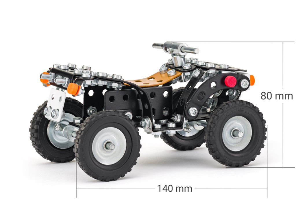 Ponořte se do světa kreativity a zábavy se stavebnicí Čtyřkolka od společnosti Merkur. Tato jedinečná sada je ideálním nástrojem pro rozvoj technických dovedností a představivosti dětí. Díky kovovým dílkům si malí stavitelé mohou postavit čtyřkolku. Stavebnice obsahuje kvalitní kovové díly, které se snadno spojují šroubky, což podporuje rozvoj jemné motoriky, logického myšlení a soustředění. Sada obsahuje: 236 dílků. Úroveň Merkur obtížnosti: 3. Baleno v krabičce. Rozměry čtyřkolky: 8 x 7,5 x 14 cm. Rozměry balení: 18 x 26 x 5 cm. Věk: 5+