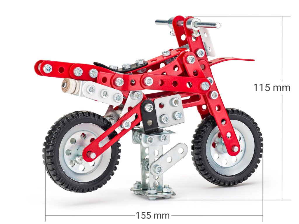 Ponořte se do světa kreativity a zábavy se stavebnicí Dirtbike od společnosti Merkur. Tato jedinečná sada je ideálním nástrojem pro rozvoj technických dovedností a představivosti dětí. Díky kovovým dílkům si malí stavitelé mohou postavit Dirtbike motorku. Stavebnice obsahuje kvalitní kovové díly, které se snadno spojují šroubky, což podporuje rozvoj jemné motoriky, logického myšlení a soustředění. Sada obsahuje: 191 dílků. Úroveň Merkur obtížnosti: 3. Baleno v krabičce. Rozměry Dirtbike: 11,5 x 7,5 x 15,5 cm. Rozměry balení: 18 x 26 x 5 cm. Věk: 5+