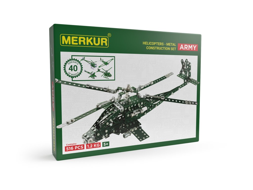 Dvouvrstvá stavebnice Merkur Helikopter Set je ideální pro všechny, kteří se chtějí ponořit do válečné atmosféry a vyzkoušet si stavbu bojového vrtulníku. Ať už podle vlastní fantazie, nebo dle vyobrazených návodů, kterých je v přiložené knížce 40. Báječný zážitek ze stavění završí okamžik, kdy se váš nový vrtulník vrhne do leteckého boje! | Počet dílků: 516 | Rozměr balení: 36 x 27 x 5 cm | Věk: 5+| Nevhodné pro děti mladší 3 let | Váha: 1,2 kg