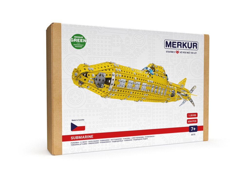 Klasická stavebnice Merkur obsahuje součástky nutné pro stavbu ponorky. V balení najdete podrobný návod, Merkur sadu nářadí a unikátní Merkur díly. Merkur díly jsou univerzální a tak vás neomezí v jakékoli modifikaci a nápadu. Stavebnici tak můžete sestavit podle přiloženého návodu nebo čistě podle svých představ. Se sestavenými modely si lze hrát, jsou velmi odolné. Rozměry: 36 x 27 x 55 cm. Počet dílků: 654. Nevhodné pro děti do tří let. Doporučený věk: 5+