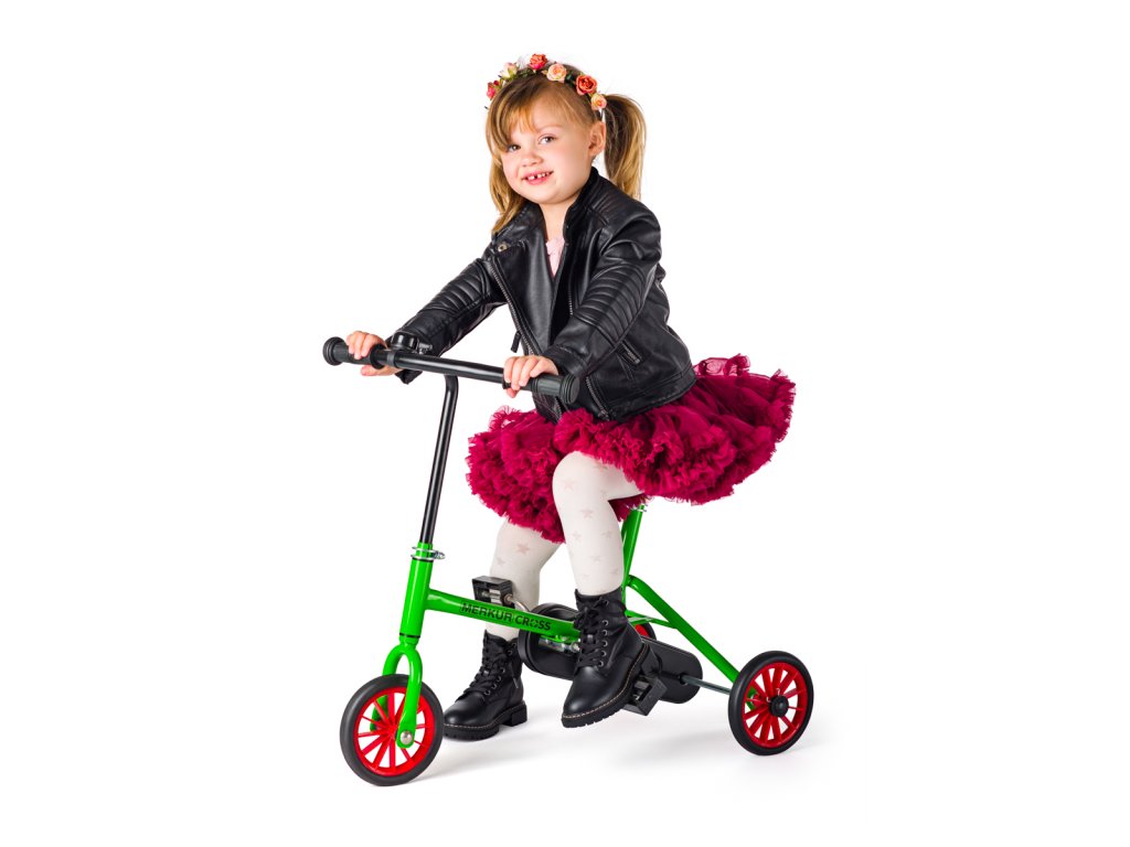 Klasická velice oblíbená tříkolka s řetězovým pohonem zadních kol. Tříkolka je vybavena výškově nastavitelným sedátkem a přední vidlicí.Rozměr: 62cm výška x40 cm šířka x 70 cm délka. Hmotnost: 3,6 kg. Tříkolka je sestavena a balena v igelitovém pytli. Barva zelená Věk: 3+ -Řidítka: Od země k ručkám – min. 55cm, Rozpětí ruček - 20cm od sebe. -Od země k horní ploše sedátka – min. 43cm, max. 49,5cm, Špička sedátka k řídítkům – 30cm Šlapky: - Vršek šlapičky (spodní) od země 10cm, Vršek šlapičky (horní) od země 24,5cm