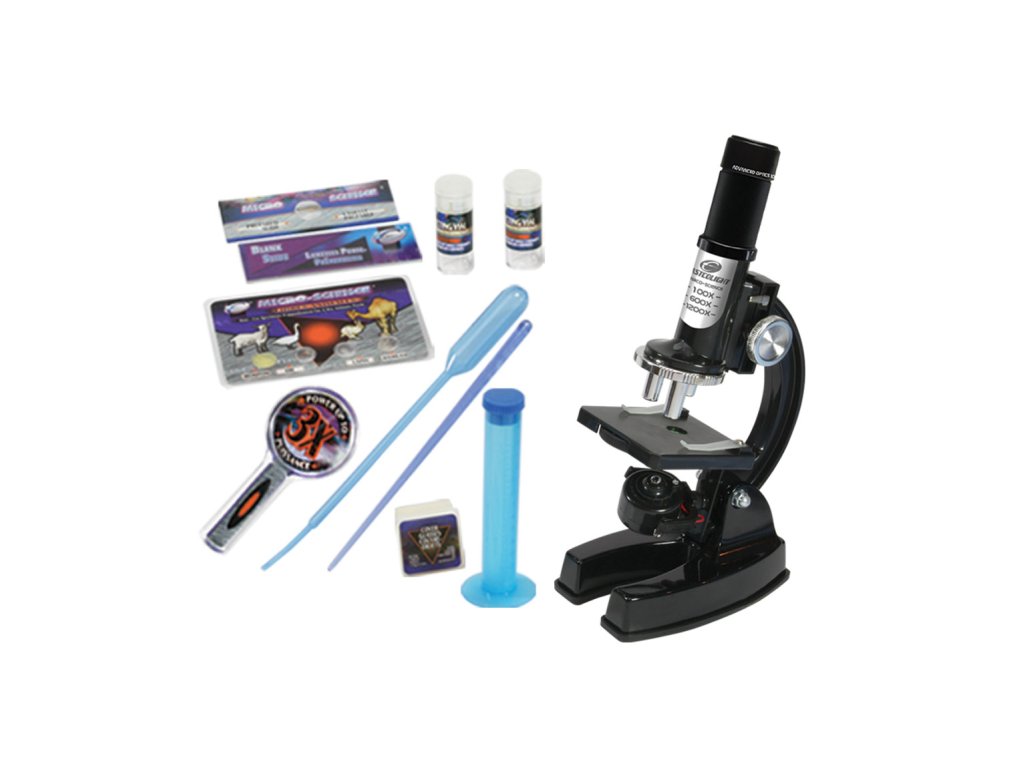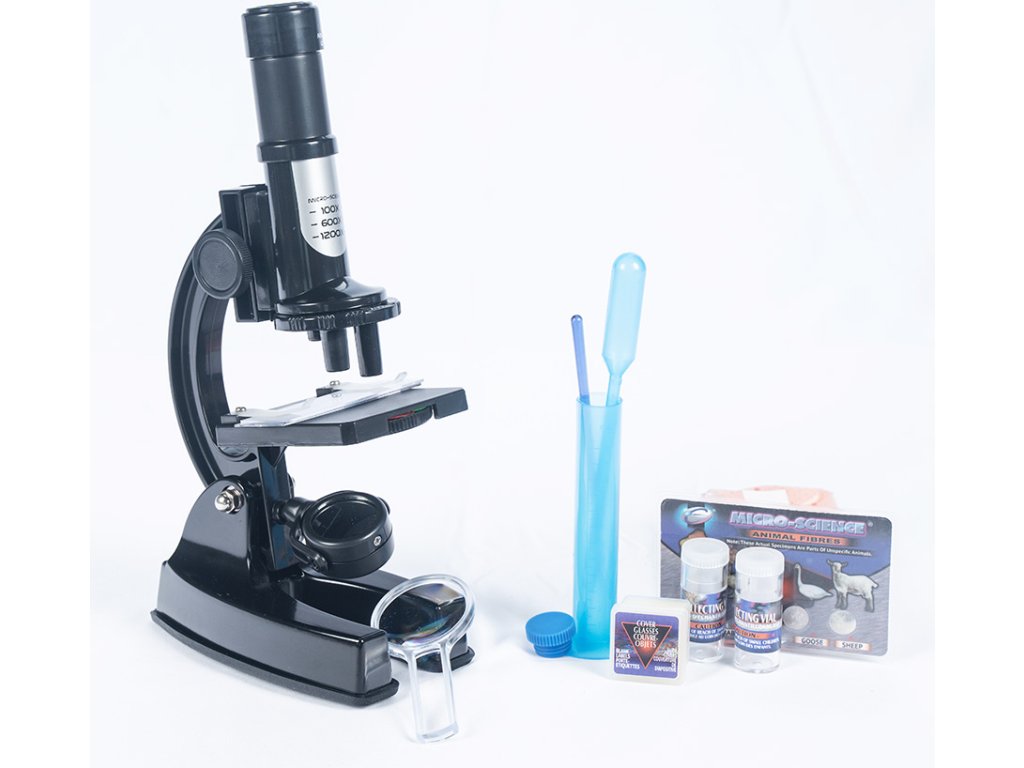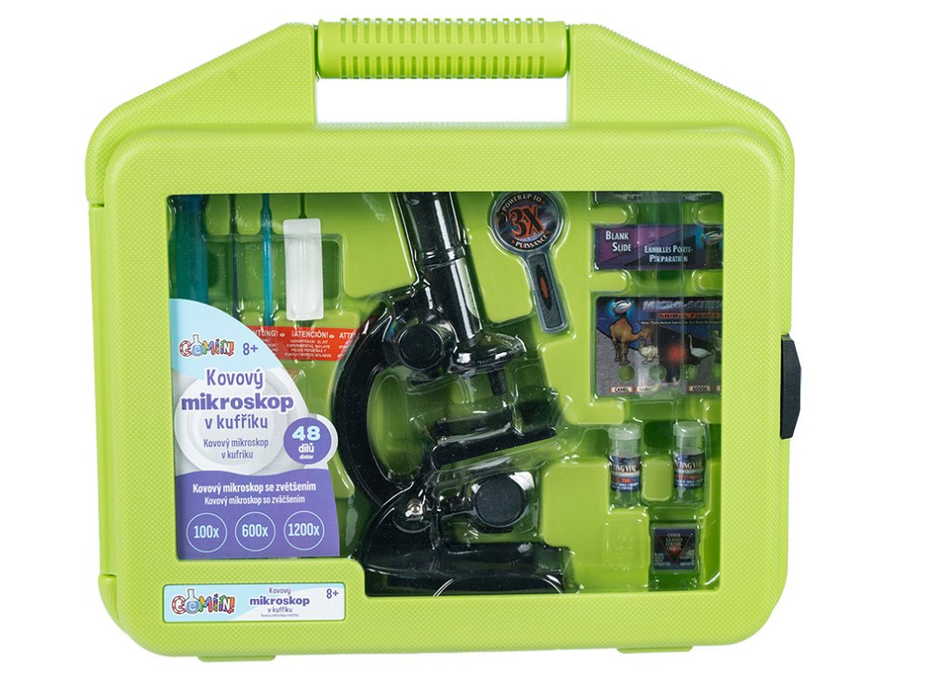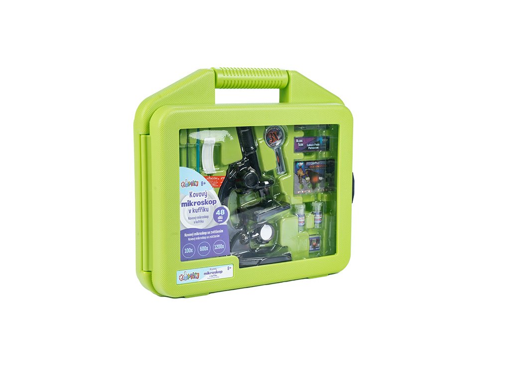 Kvalitní kovový mikroskop je perefektní přístoj pro objevování světa, který nemůžeš vidět pouhým okem. Zvětšení až 1200x. Kufřík obsahuje vše potřebné pro zkoumání.