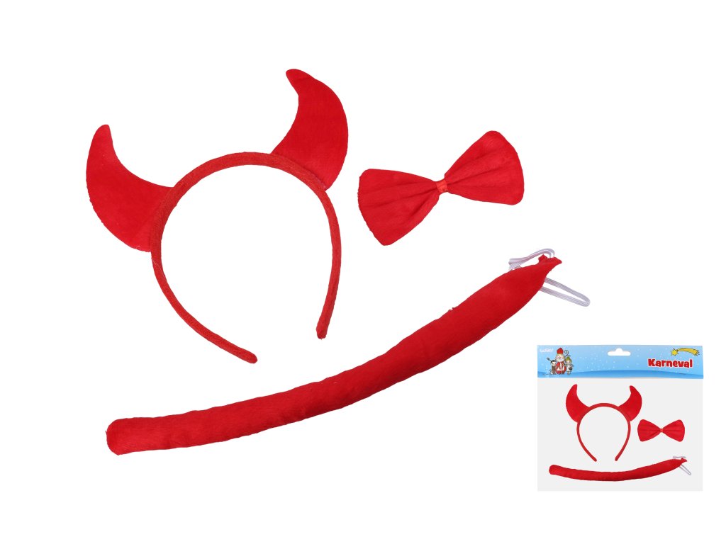 Set obsahuje: čelenku s růžky, motýlka a ocas