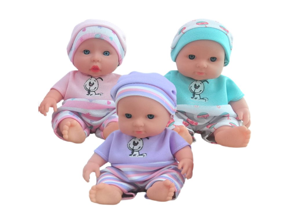 Miminko. Velikost 18 cm. Display box - 19 ks. 3 varianty - růžová, fialová, modrá.