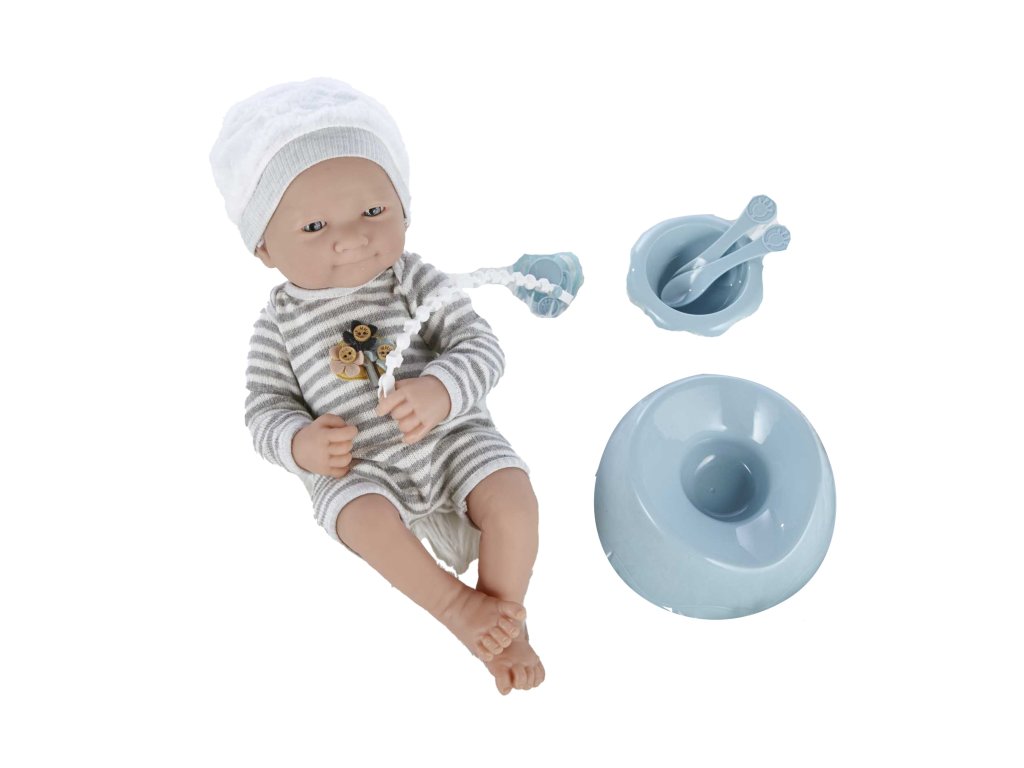 Miminko s nočníkem. Velikost panenky 35cm. Obsahuje: panenku, nočník, dudlík, misku s příborem.