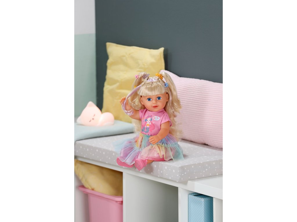 BABY born Carla má krásné, vysoce kvalitní vlásky a součástí je 7 doplňků na česání.