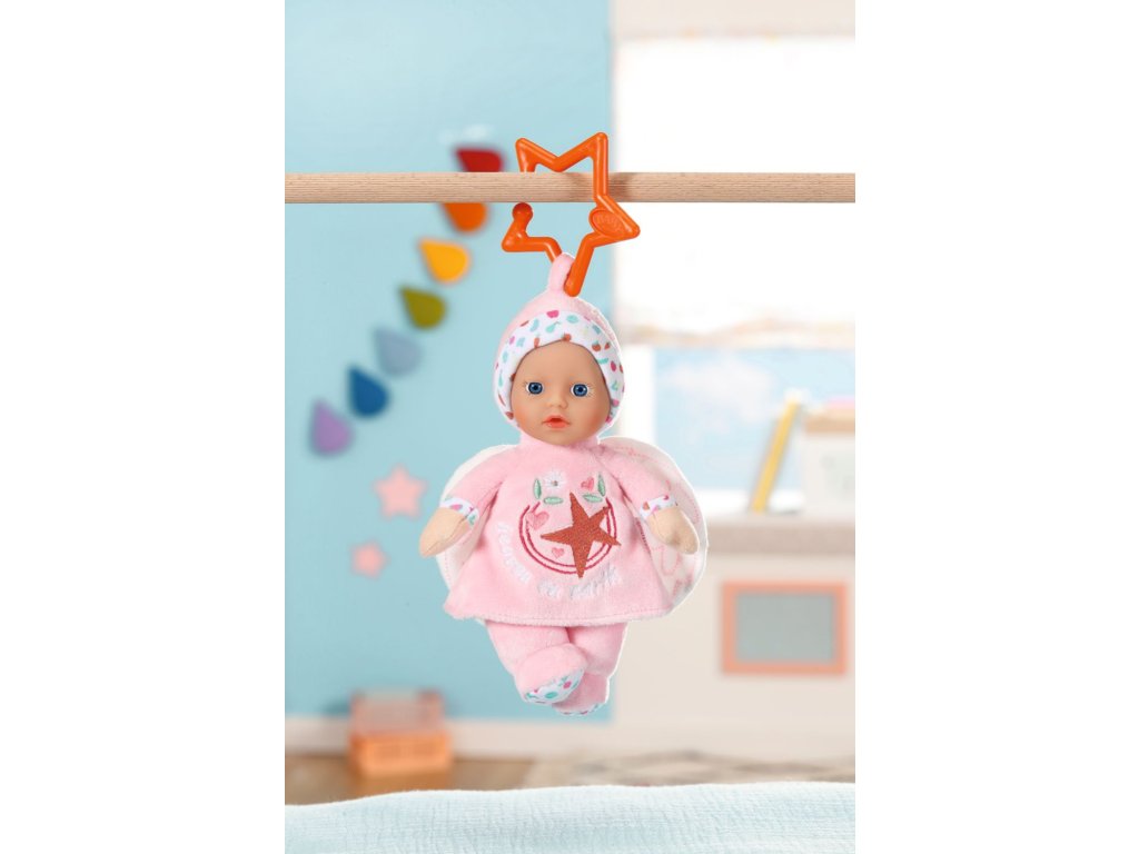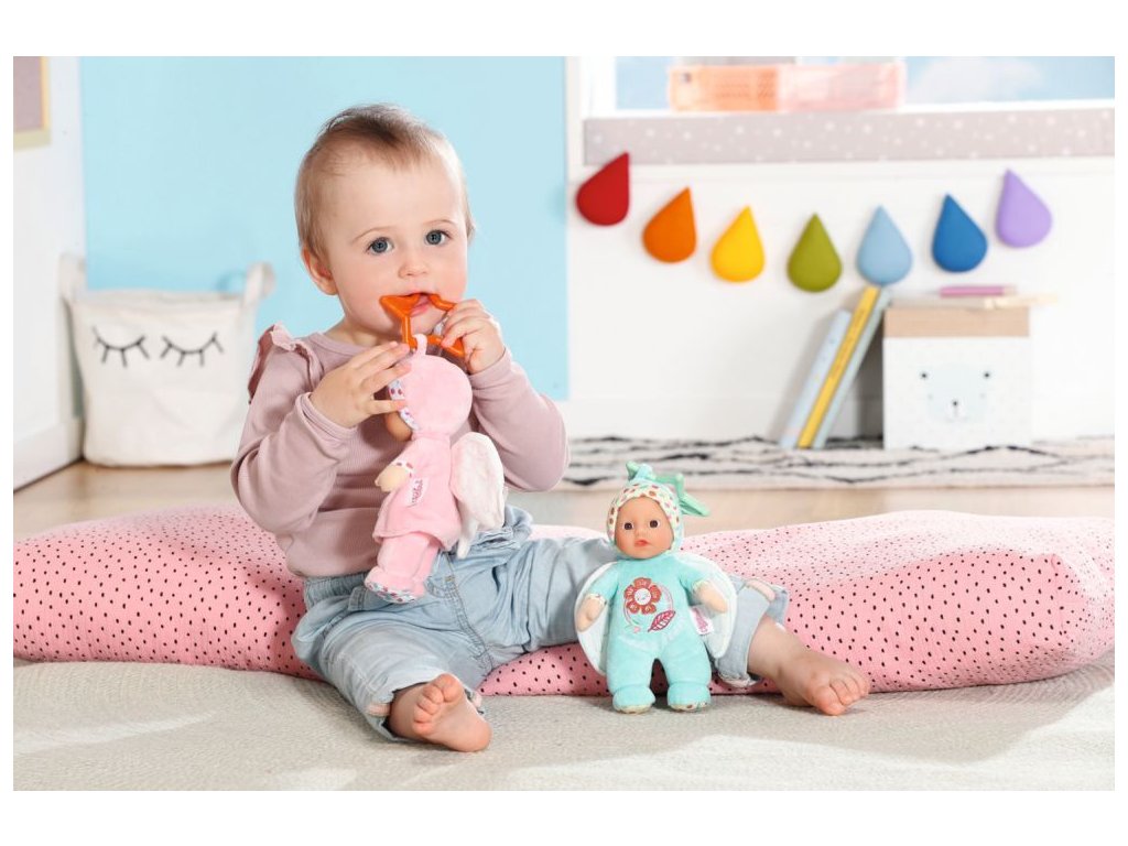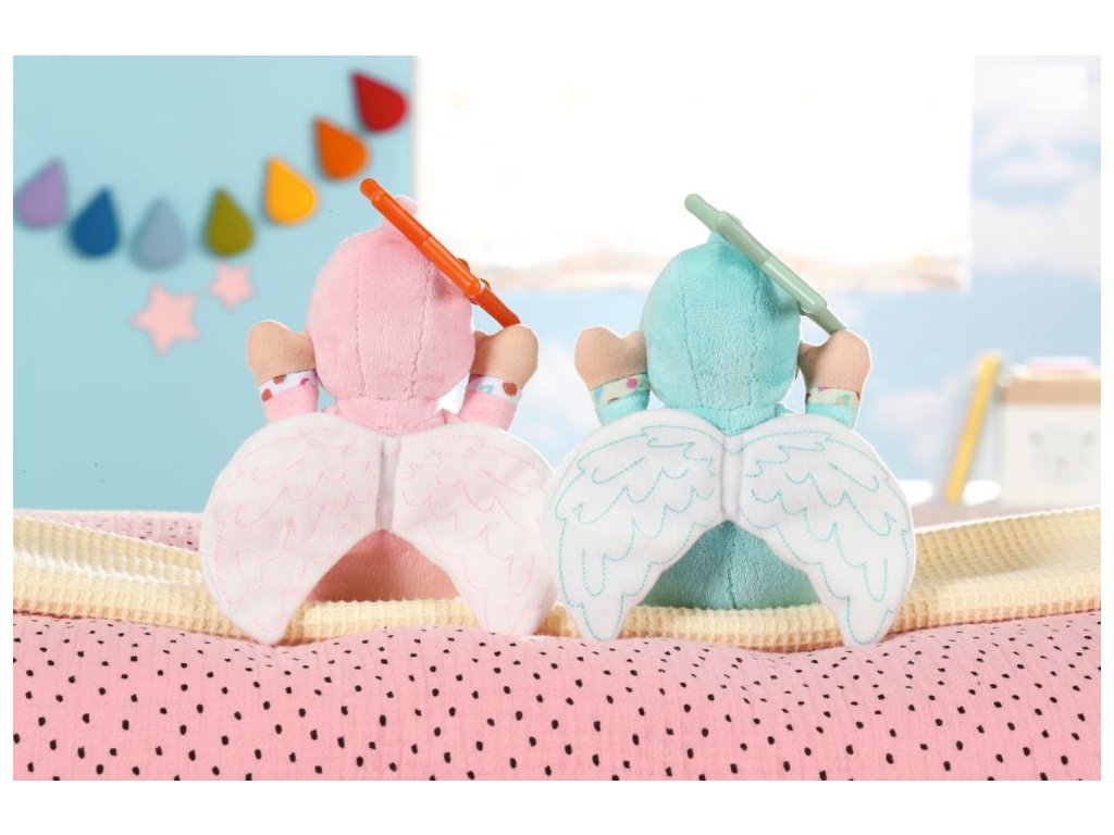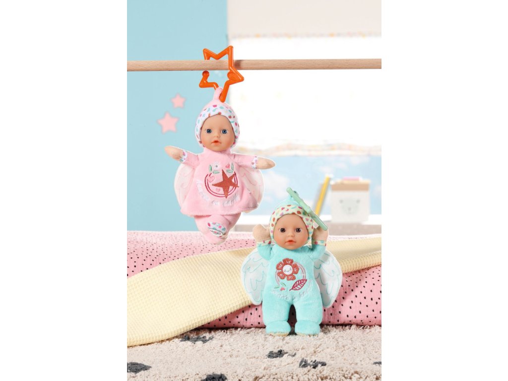 BABY born for babies Andílek je panenka velikosti 18 cm s chrastítkem uvnitř. Na výběr v růžové nebo tyrkysové barvě.