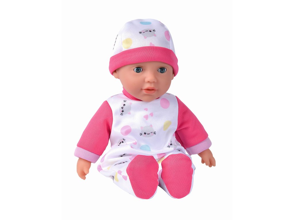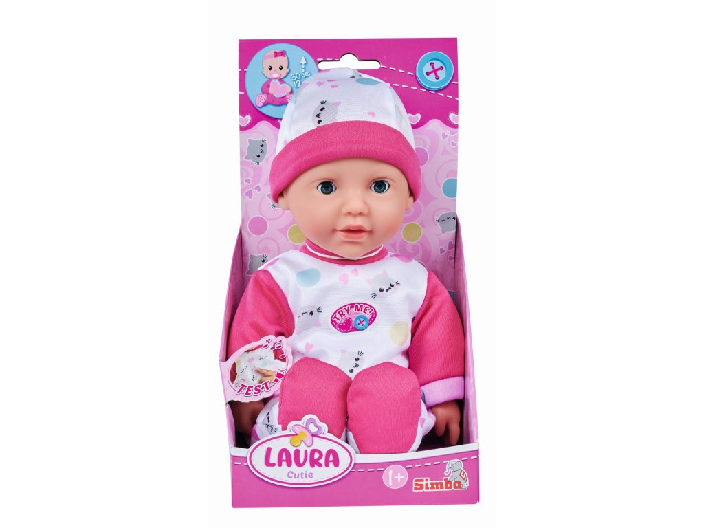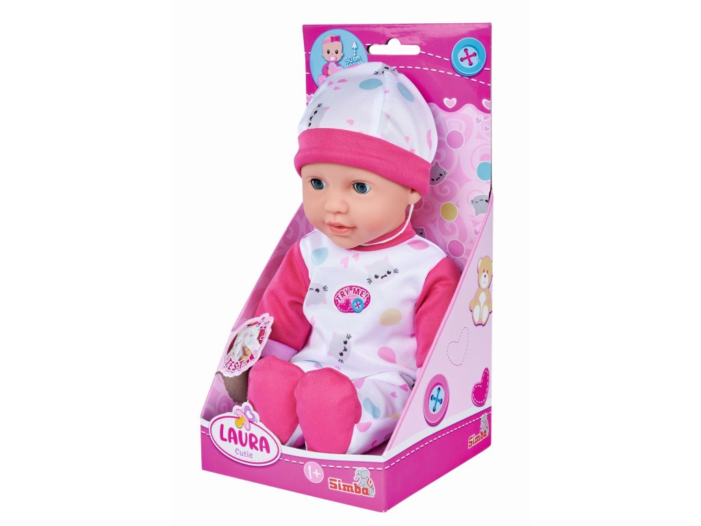 Panenka Laura Cutie s měkkým tělíčkem v roztomilých dupačkách s koťátky. Má pět různých zvuků, které se ozvou po stisknutí jejího bříška. Může se například smát, říkat „Oh Oh““ nebo hrát píseň. Velikost 30 cm.