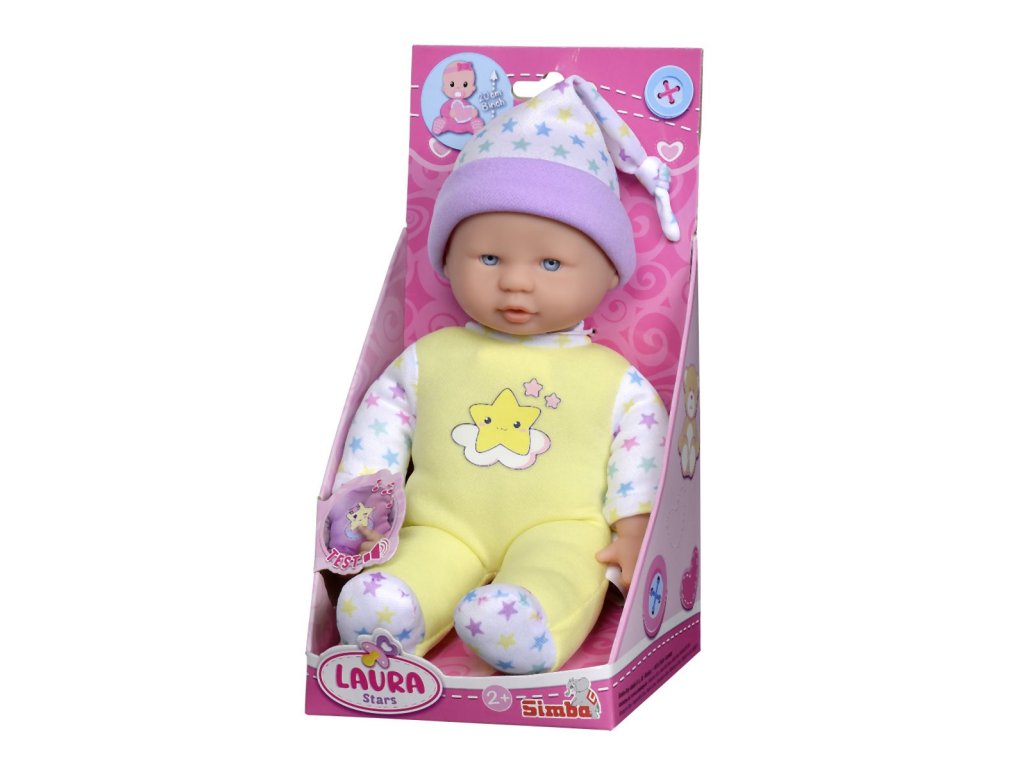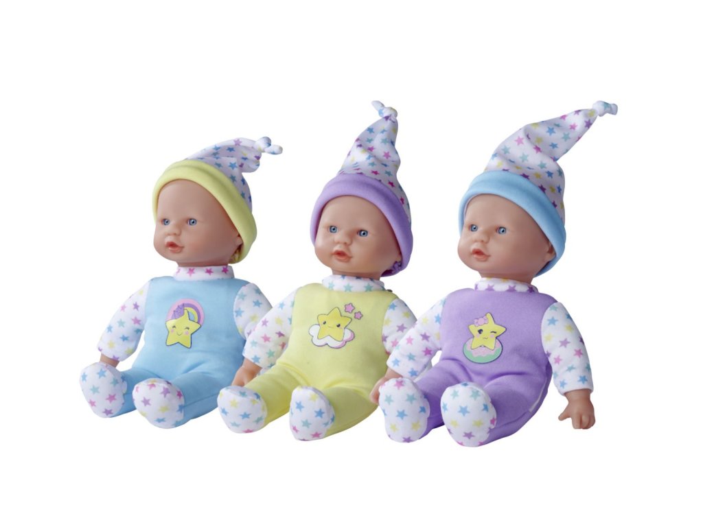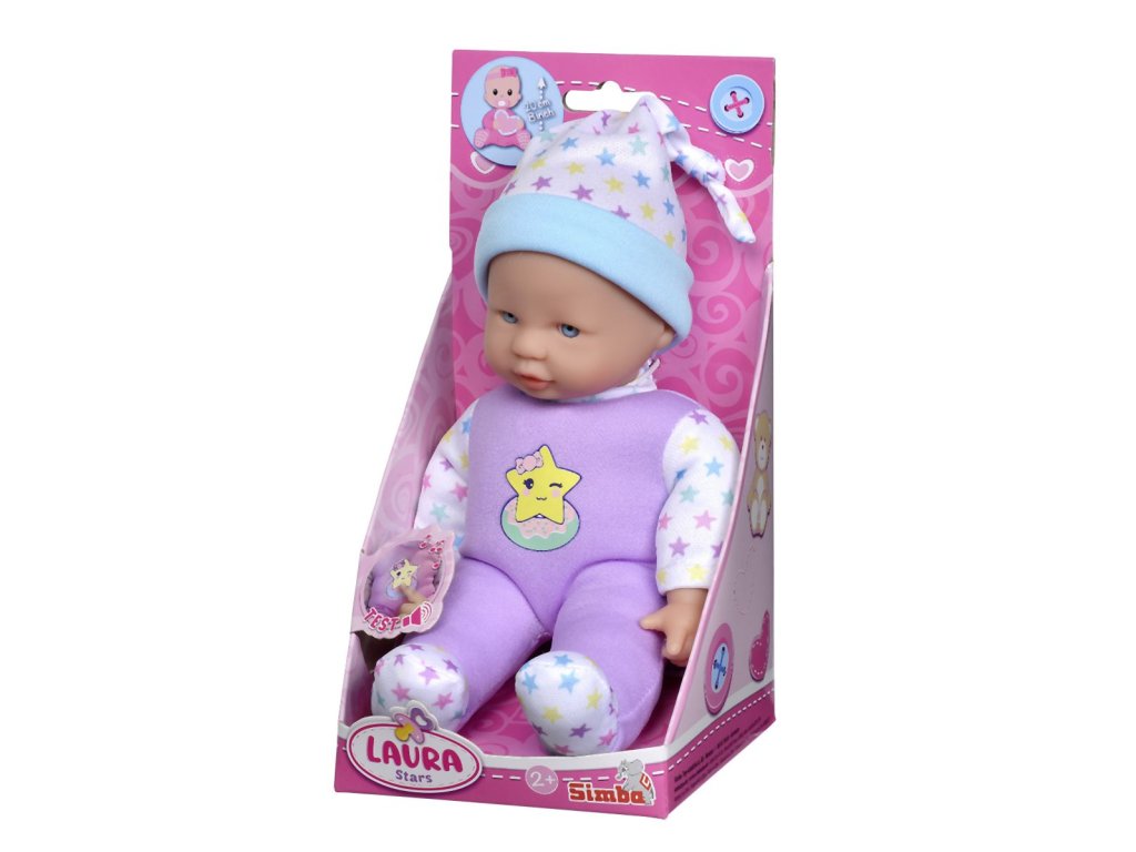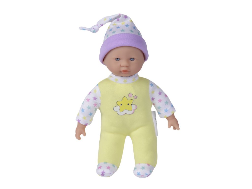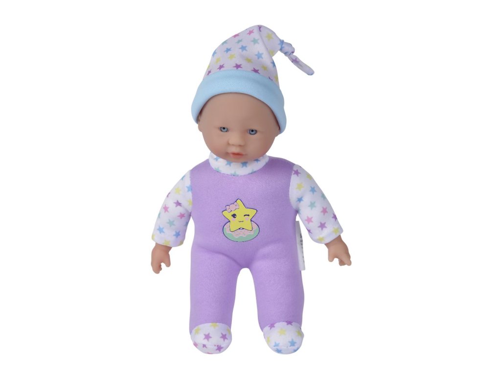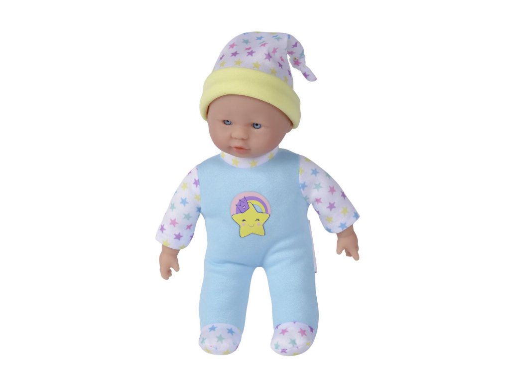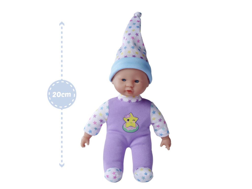 Panenka s měkkým tělíčkem a pěti zvuky, v roztomilém barevném designu s hvězdičkami, 3 druhy. Velikost 20 cm.