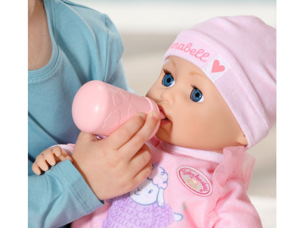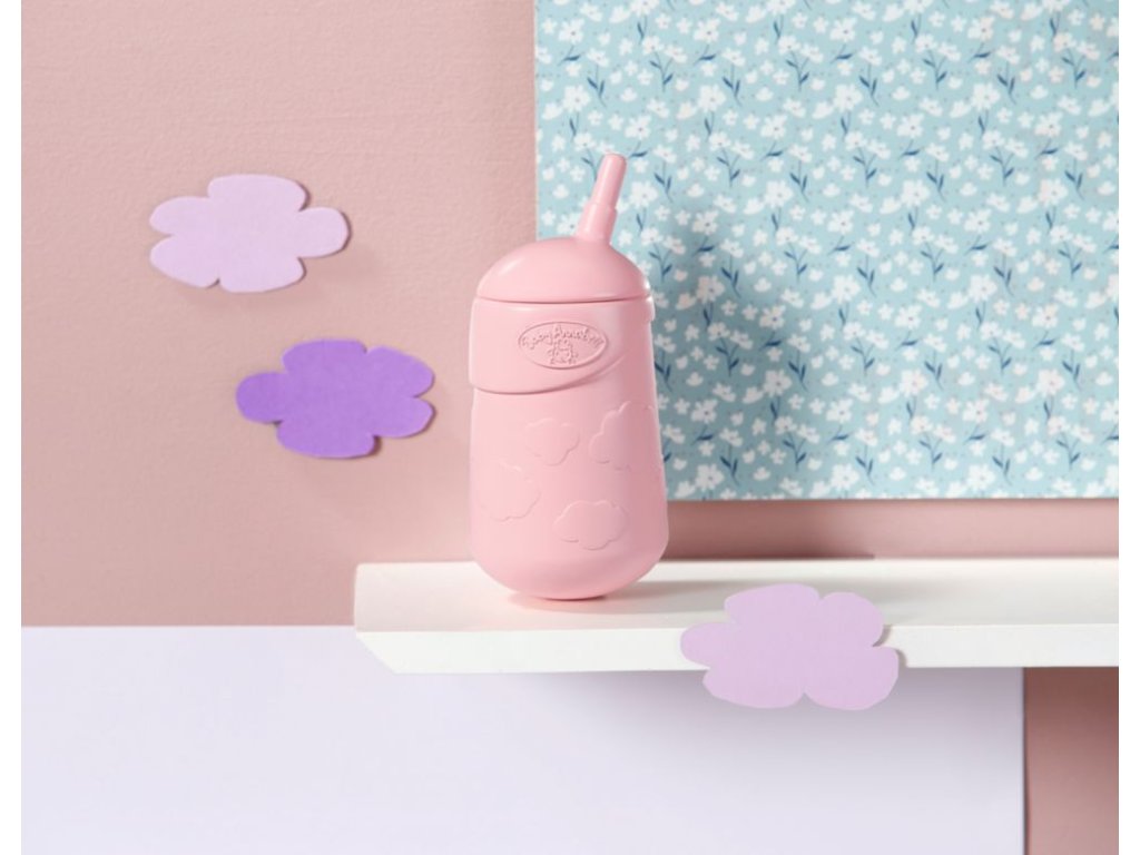 Růžová lahvička má velmi moderní vzhled. Na jejím povrchu jsou znázorněny jemné obláčky. Annabell, Alexander a Leah nadšeně pijí a přitom pohybují pusinkou jako opravdová miminka. Díky ergonomickému tvaru je lahvička ideální pro malé dětské ručičky.
