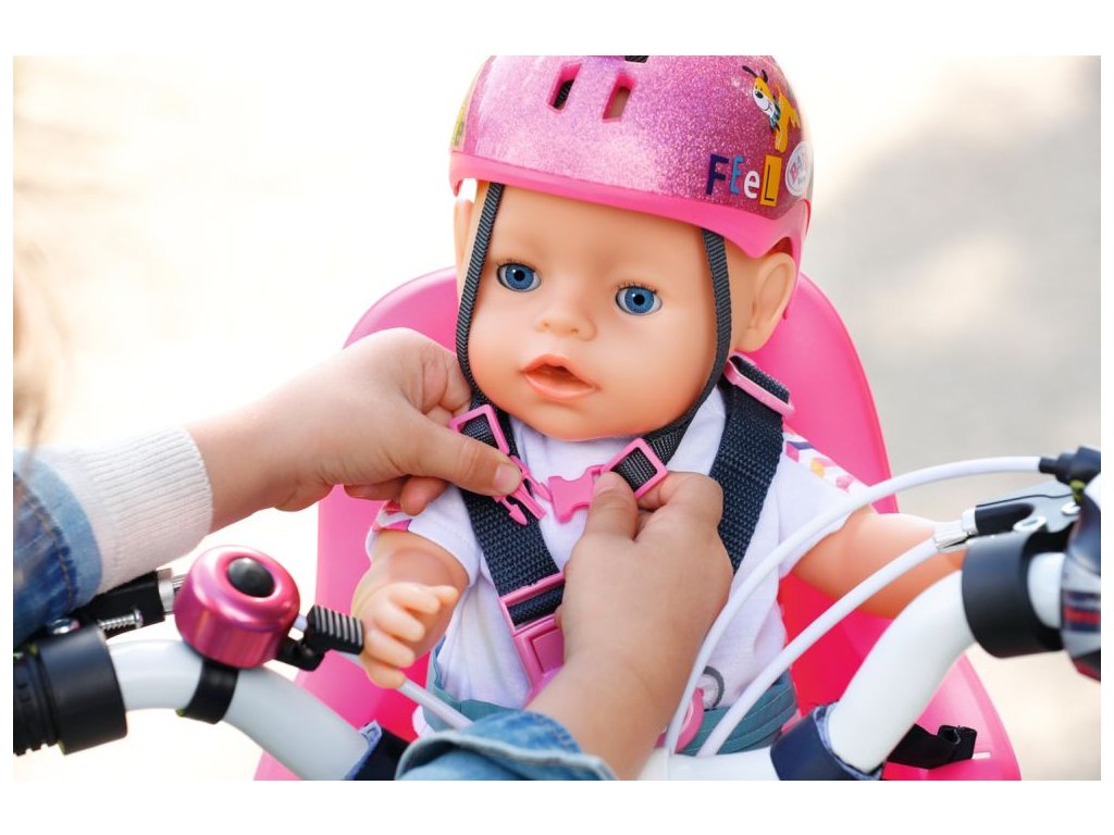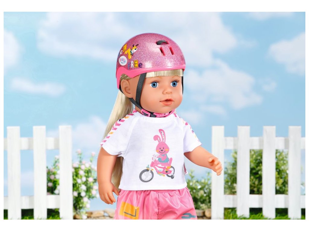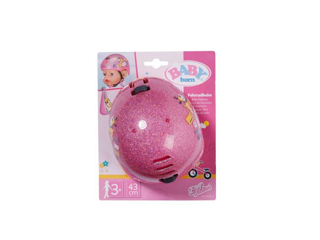 Bezpečnost je důležitá pro každého, a proto si BABY born před každou jízdou nasazuje helmu, ať už vyráží na kole nebo na tříkolce. Díky jasné růžové barvě a třpytkám nelze BABY born přehlédnout. Helma vypadá skvěle i na starších sourozencích BABY born.