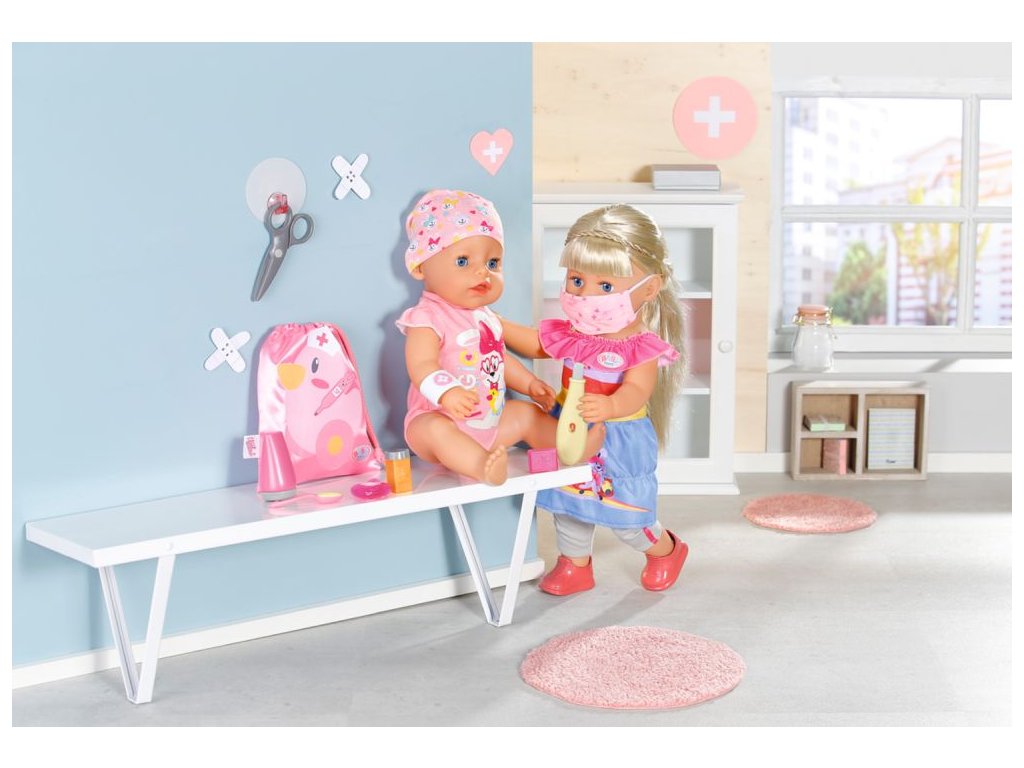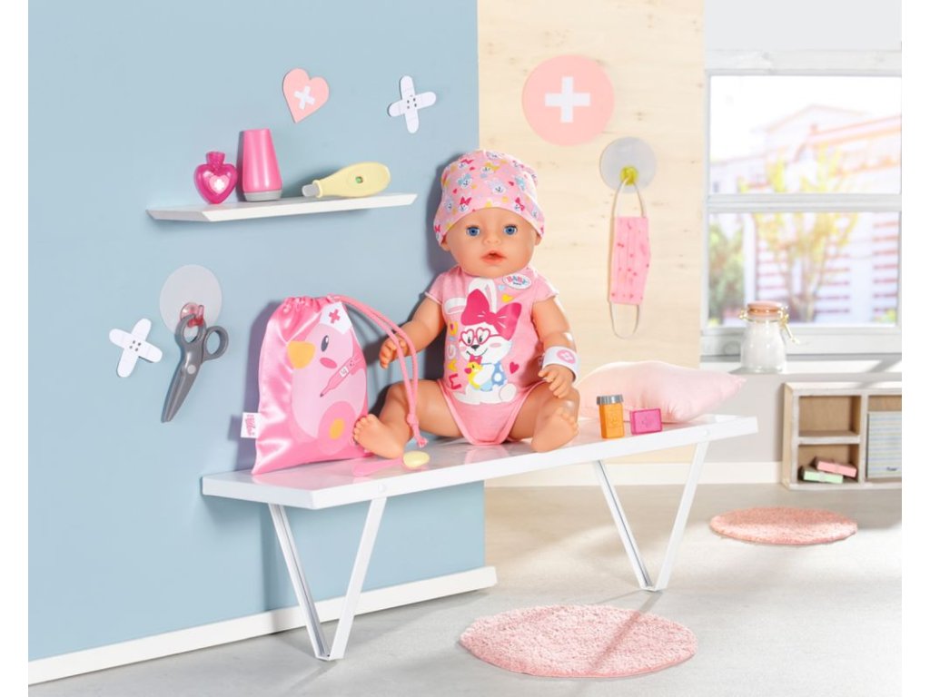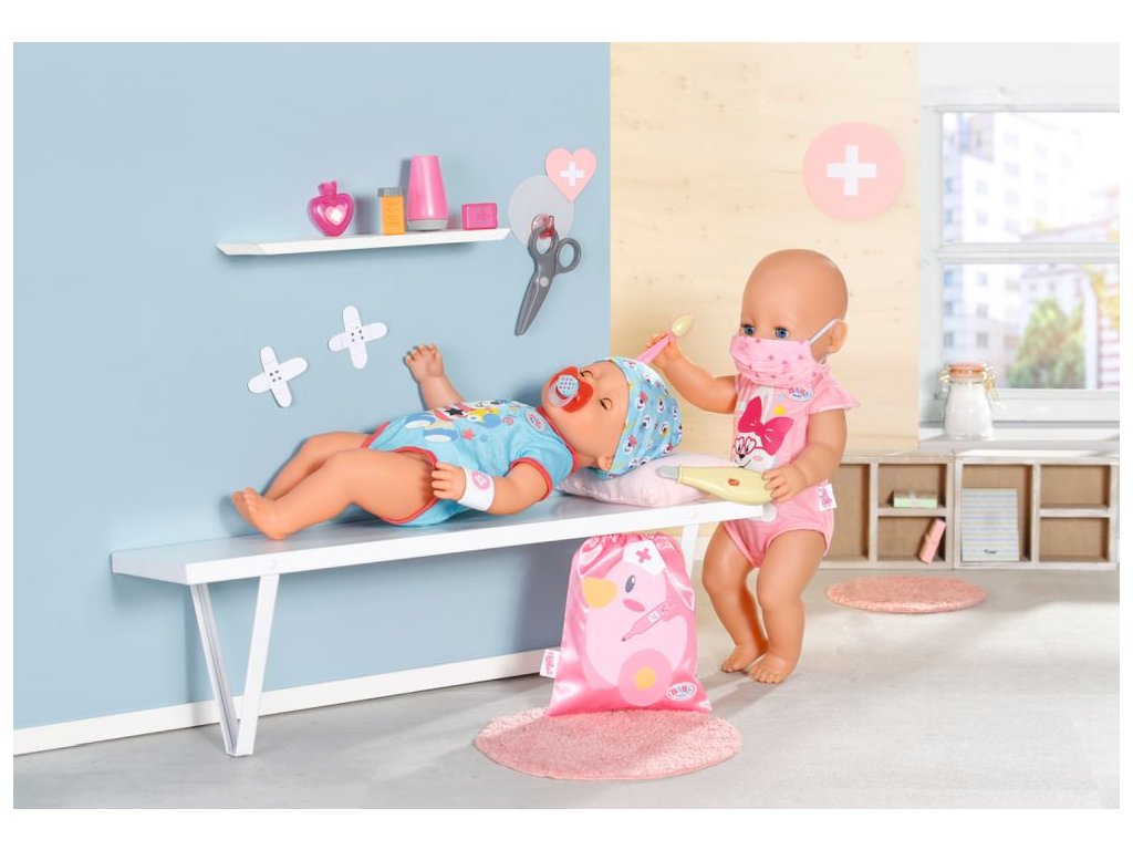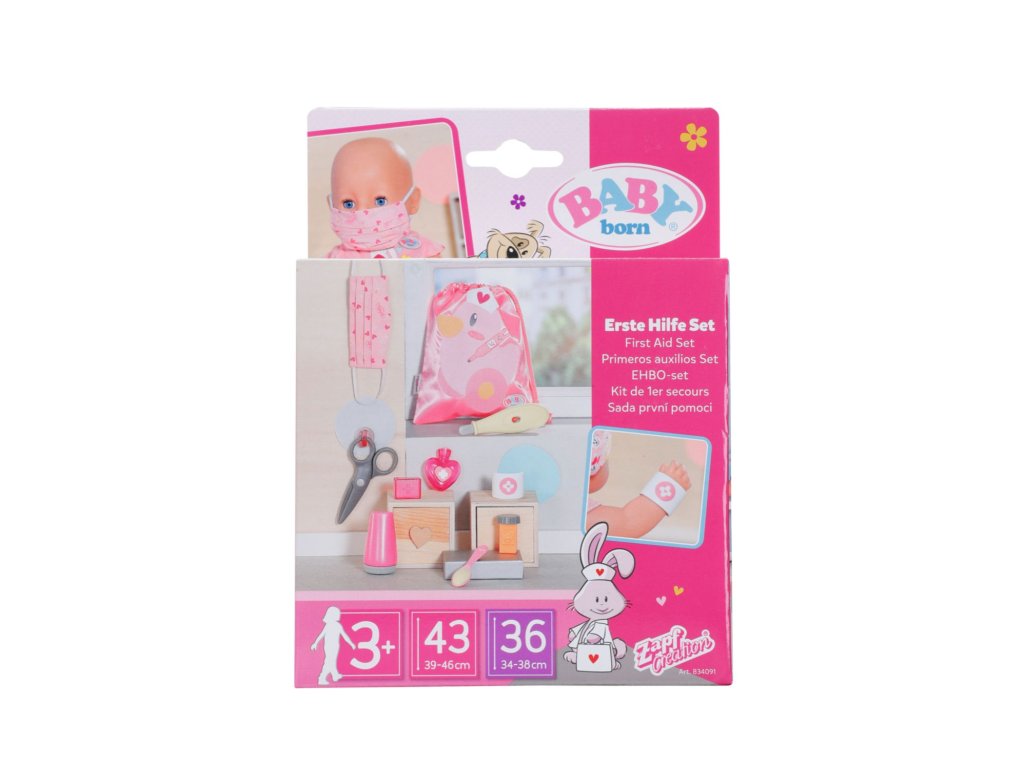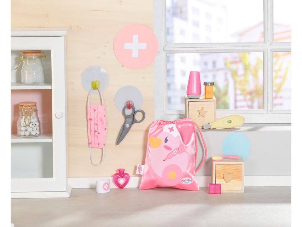 BABY born Sada první pomoci obsahuje 9 zdravotnických potřeb v látkovém sáčku.