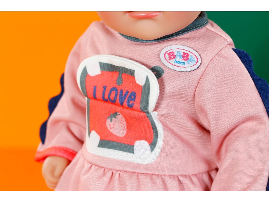 Vítejte v džungli! Hrošík na šatech dětem okamžitě zvedne náladu. Roztomilé detaily na rukávech spolu s modrými pruhovanými legínami perfektně doplňují celý outfit. A to není vše: Hrošík dokonce může otevřít pusu a má pro vás sladkou zprávu!