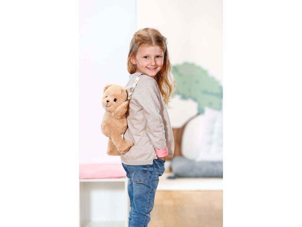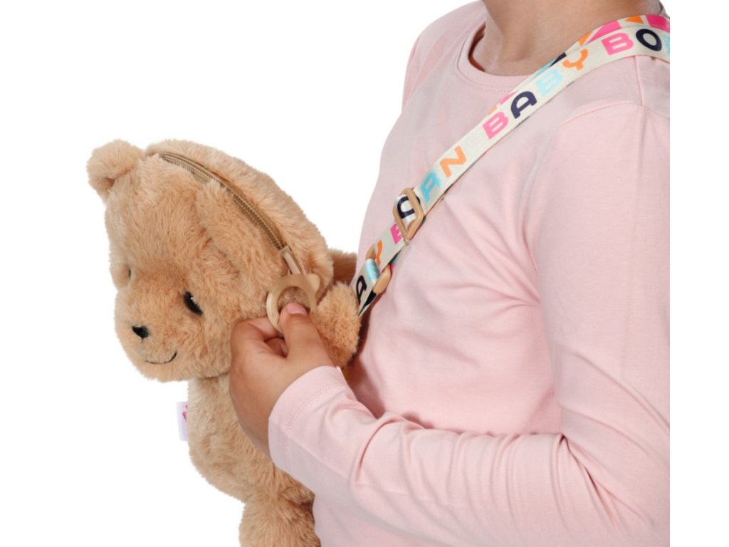 Medvídek BABY born nyní i jako kabelka! Medvídek má uvnitř prostor na drobnosti a díky popruhu jej lze snadno přehodit přes rameno a vzít s sebou. Díky zipu na hlavě medvídka z něj nic nevypadne.