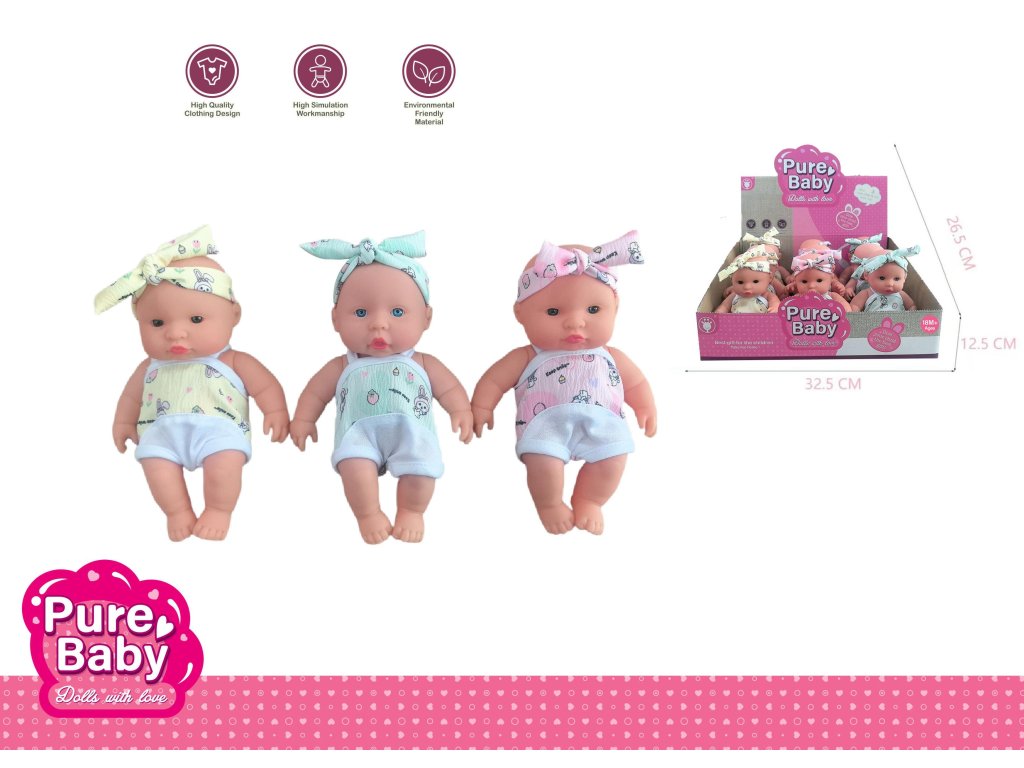 Miminko. Velikost 20 cm. 9 ks display box. 3 varianty - žlutá, modrá, růžová.